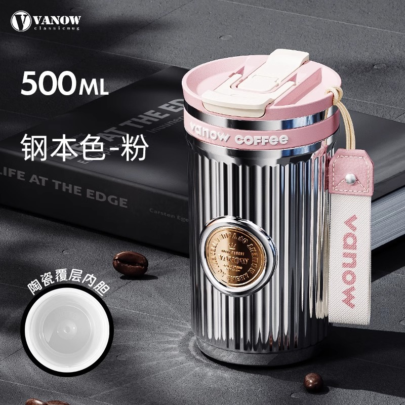Vanow Medal 커피 컵 보온병 컵 세라믹 라이너 여자 높은 색상 가치 새로운 휴대용 밀짚 동반 물 컵스토어 가기