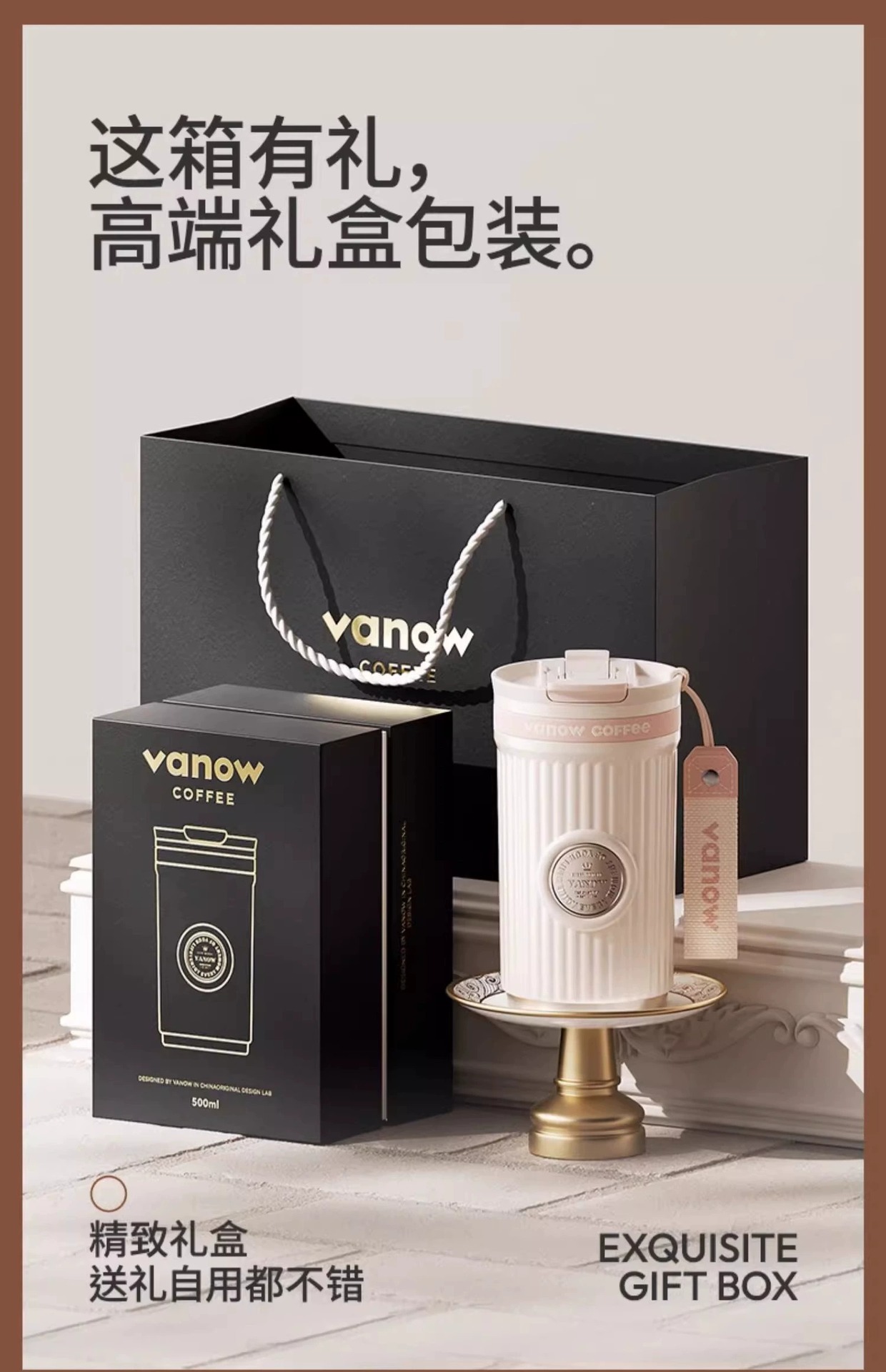 • 살구 화이트 500ml [316 스테인레스 스틸 + 리프팅 로프 + 절묘한 선물 상자] 각인 가능