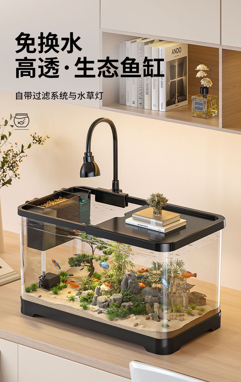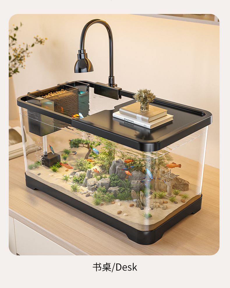3 그리드 필터 물고기 탱크 수족관 플라스틱 투명 탱크 거실 발코니 홈 조경 중소 생태 데스크탑 탱크스토어 가기