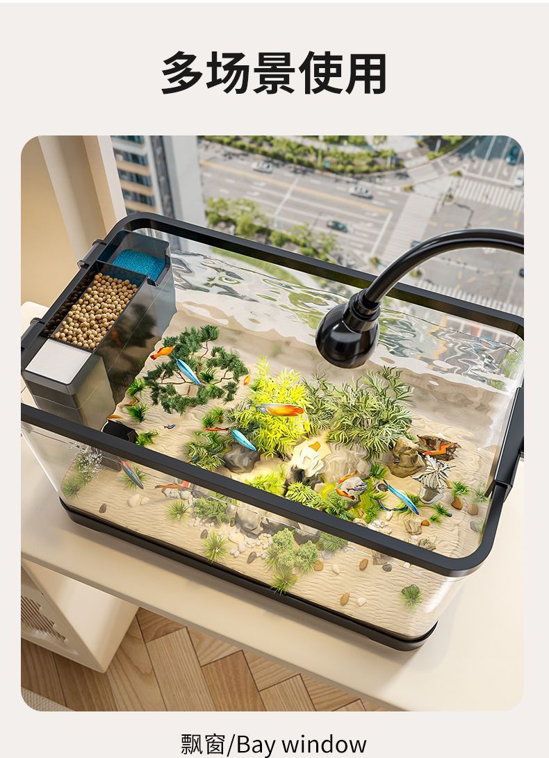 3 그리드 필터 물고기 탱크 수족관 플라스틱 투명 탱크 거실 발코니 홈 조경 중소 생태 데스크탑 탱크