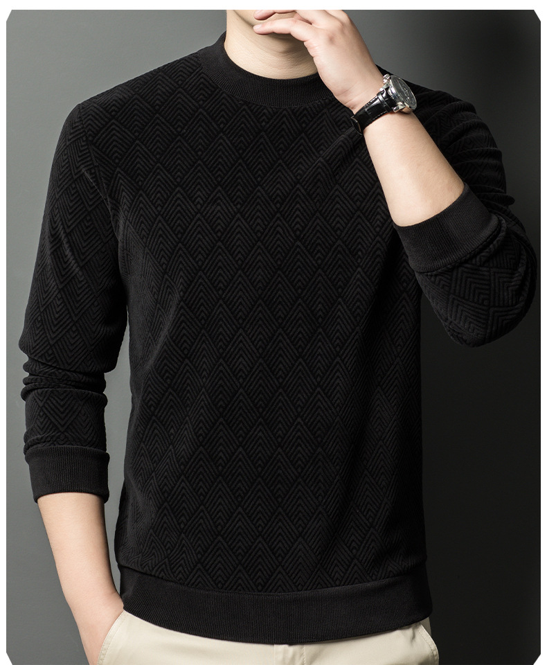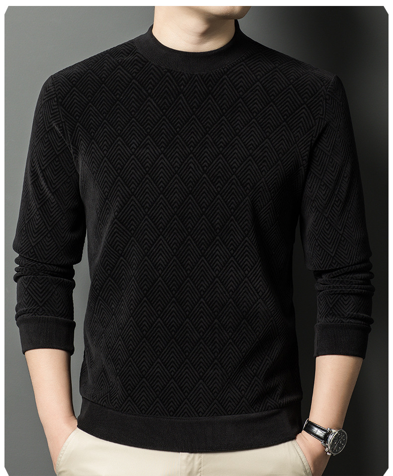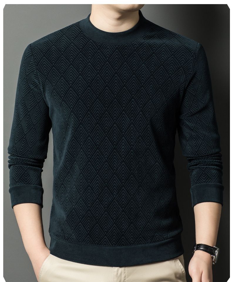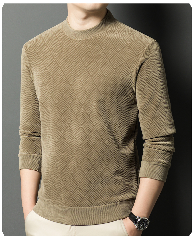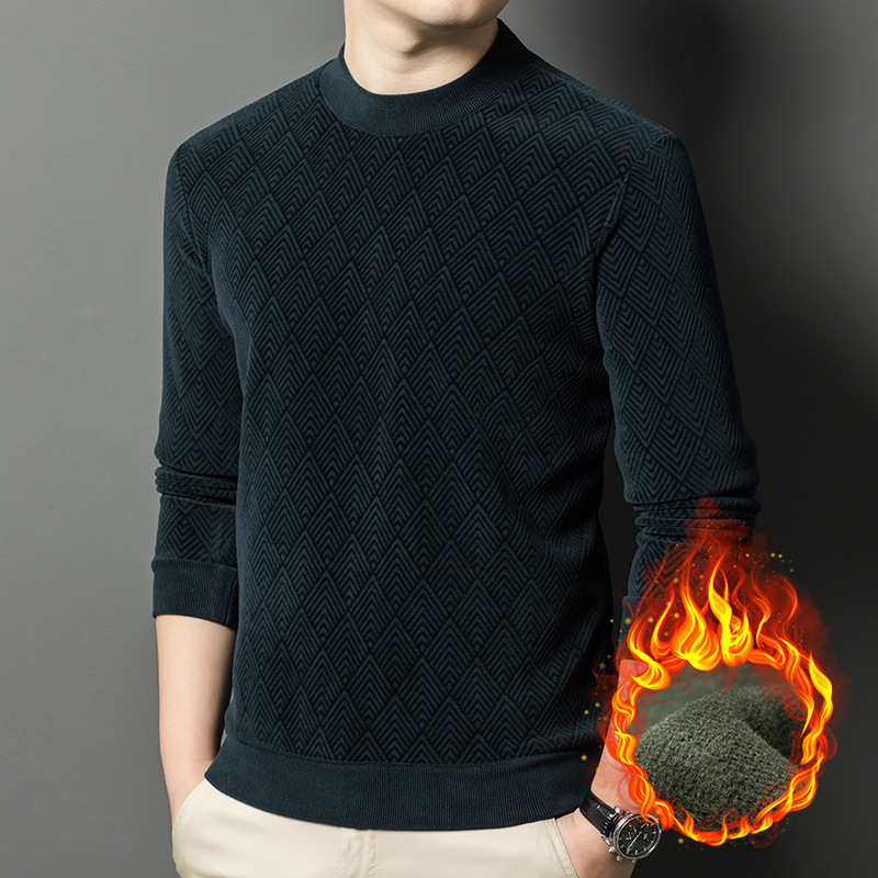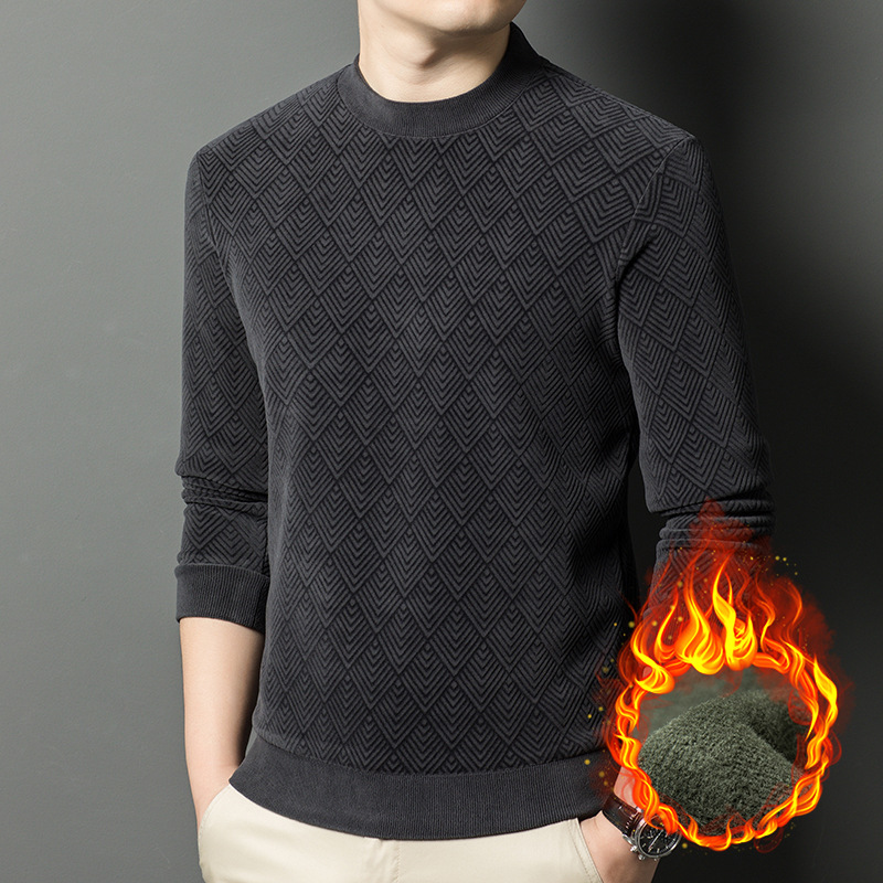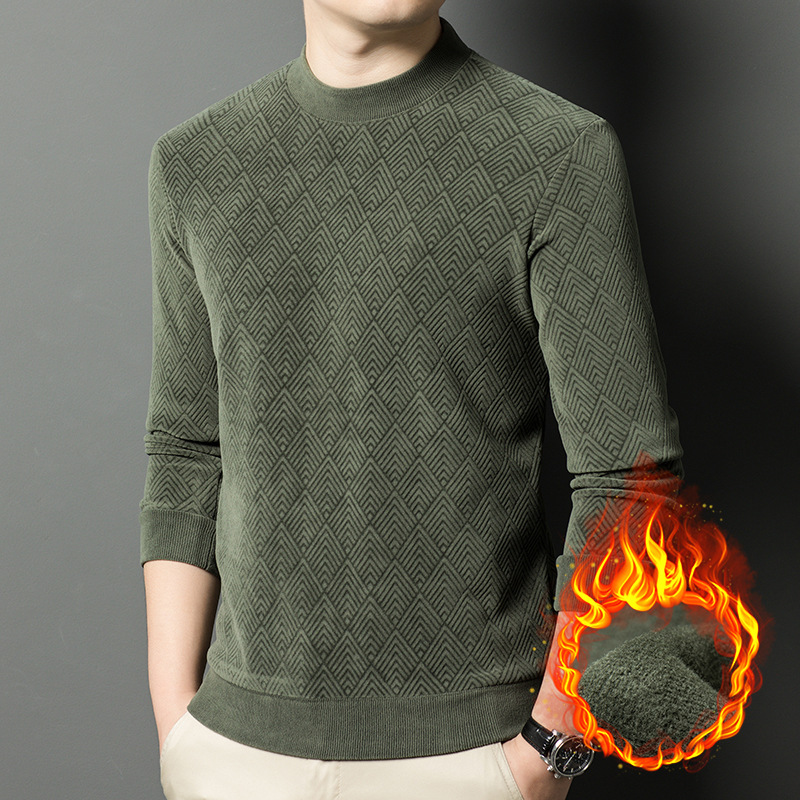 남성용 느슨한 캐주얼 가을과 겨울 기모 두꺼운 따뜻한 크루 넥 터틀넥 스웨터 아빠 겨울베이스 셔츠 스웨터