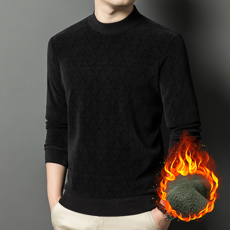 남성용 느슨한 캐주얼 가을과 겨울 기모 두꺼운 따뜻한 크루 넥 터틀넥 스웨터 아빠 겨울베이스 셔츠 스웨터스토어 가기