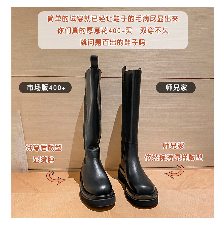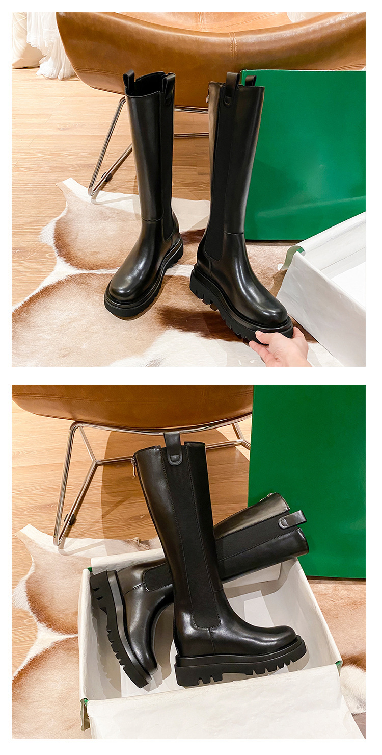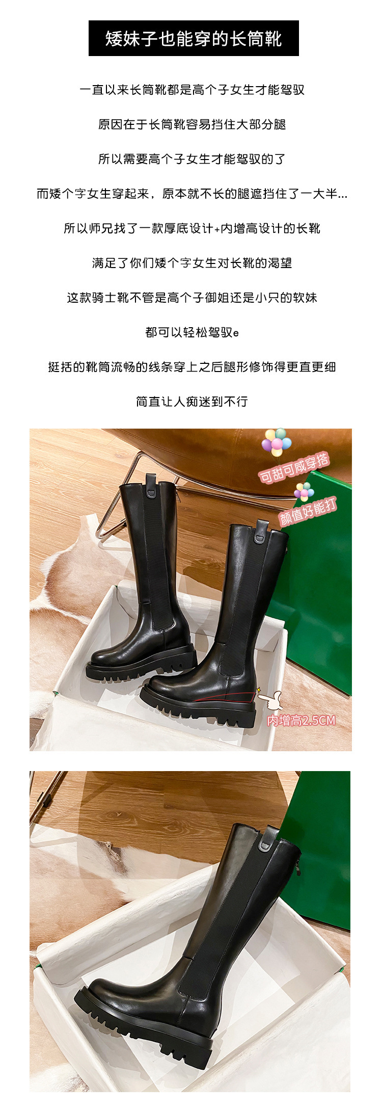 소가죽 버전~ 여성용 신형 내부 높이 증가 카멜리온 부츠, 따뜻하고 벨벳 탄성 두꺼운 밑창 무릎 위 부츠스토어 가기