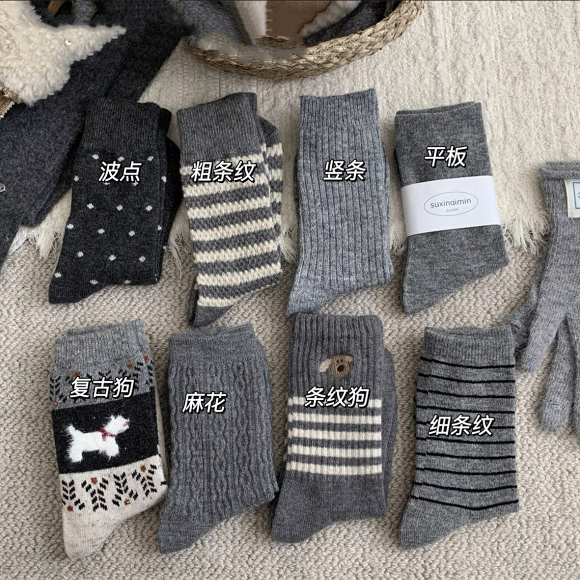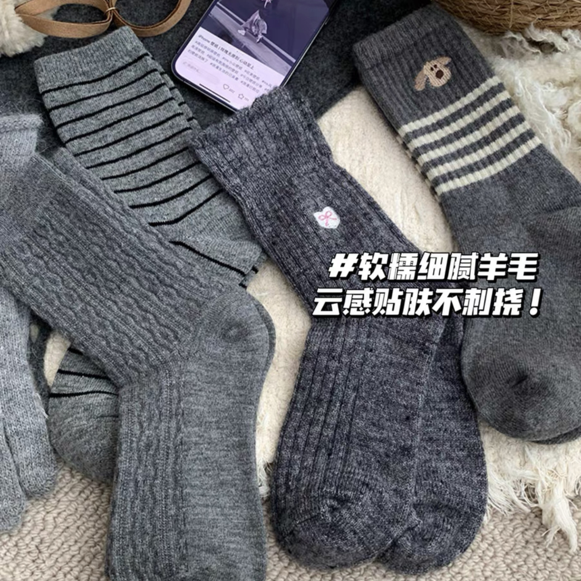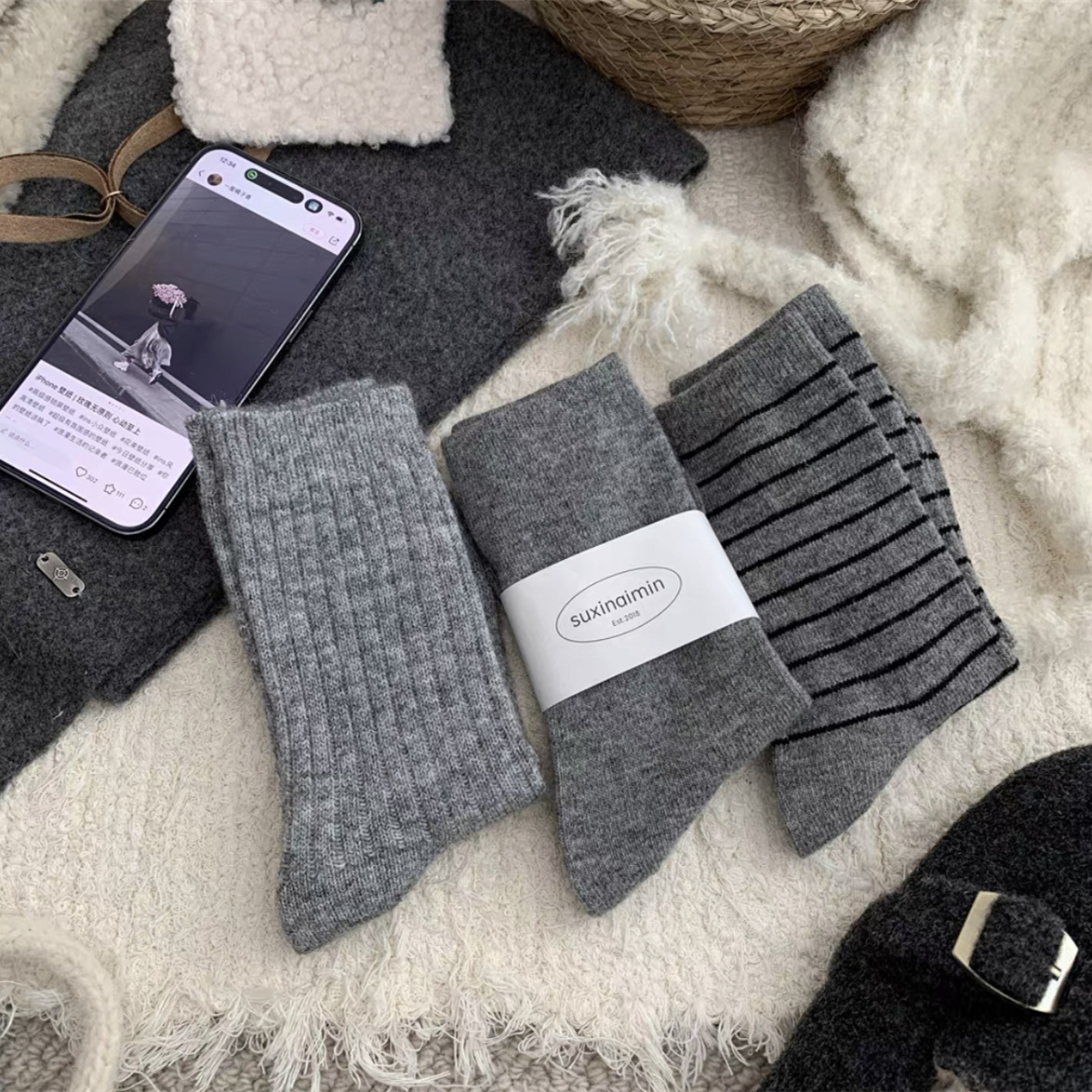 양모 따뜻한 양말 어린이 중간 길이 양말 가을과 겨울 두꺼운 기모 회색 봉제 귀여운 겨울 스타킹스토어 가기