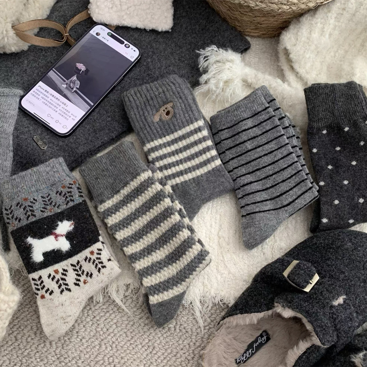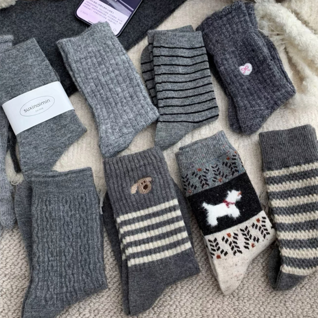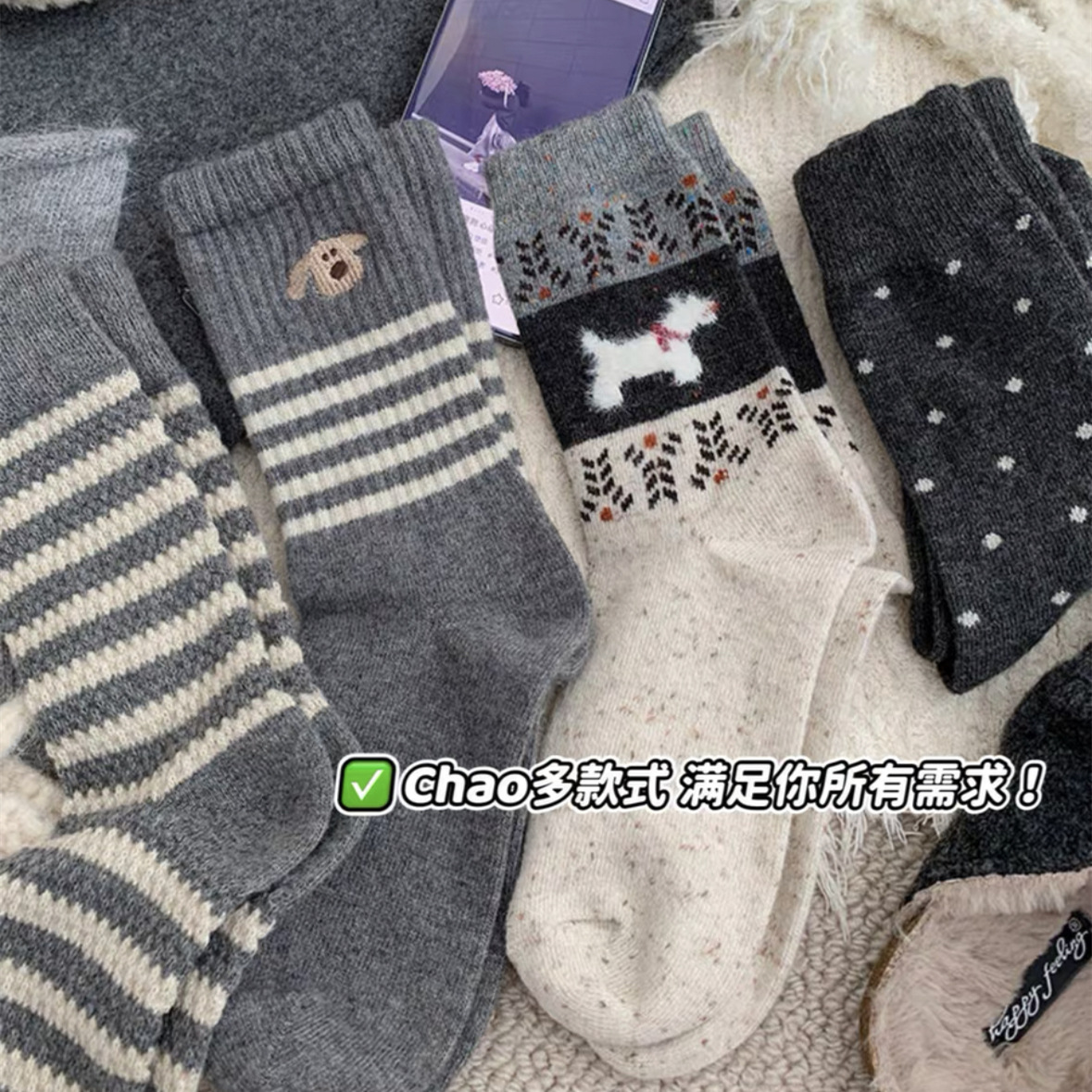 양모 따뜻한 양말 어린이 중간 길이 양말 가을과 겨울 두꺼운 기모 회색 봉제 귀여운 겨울 스타킹스토어 가기