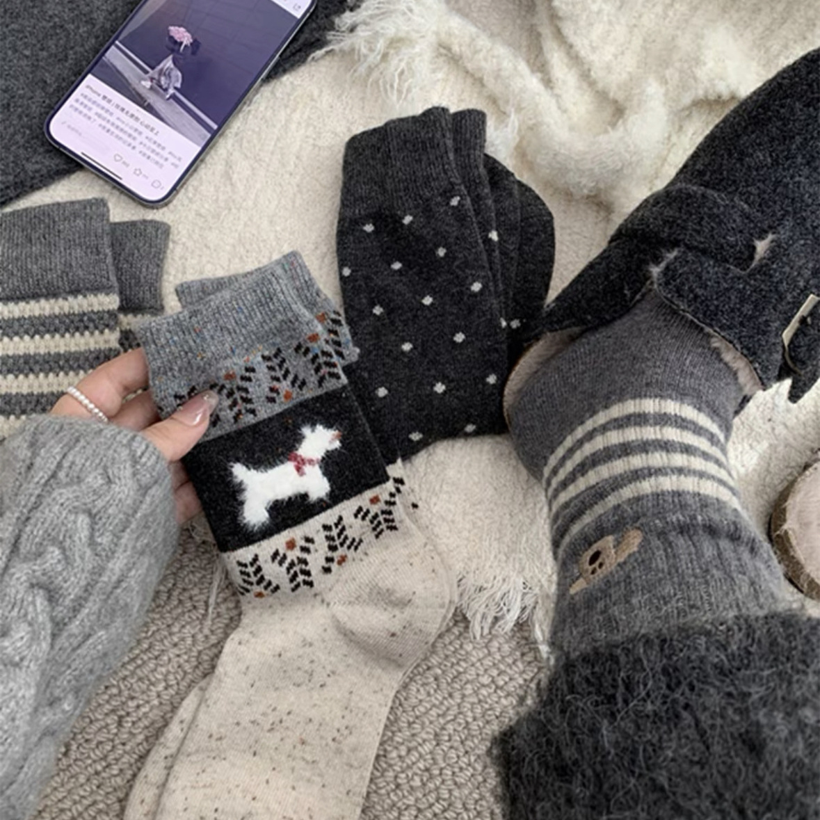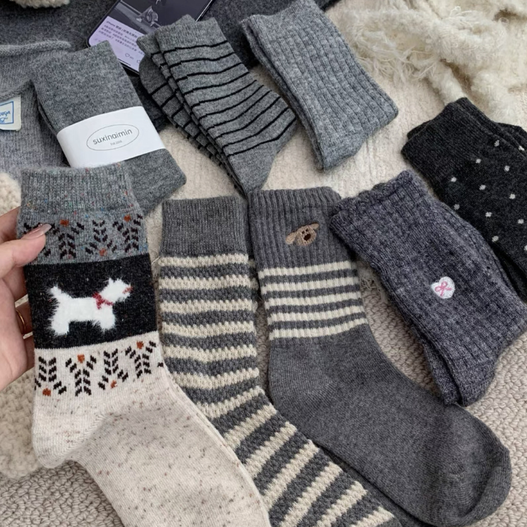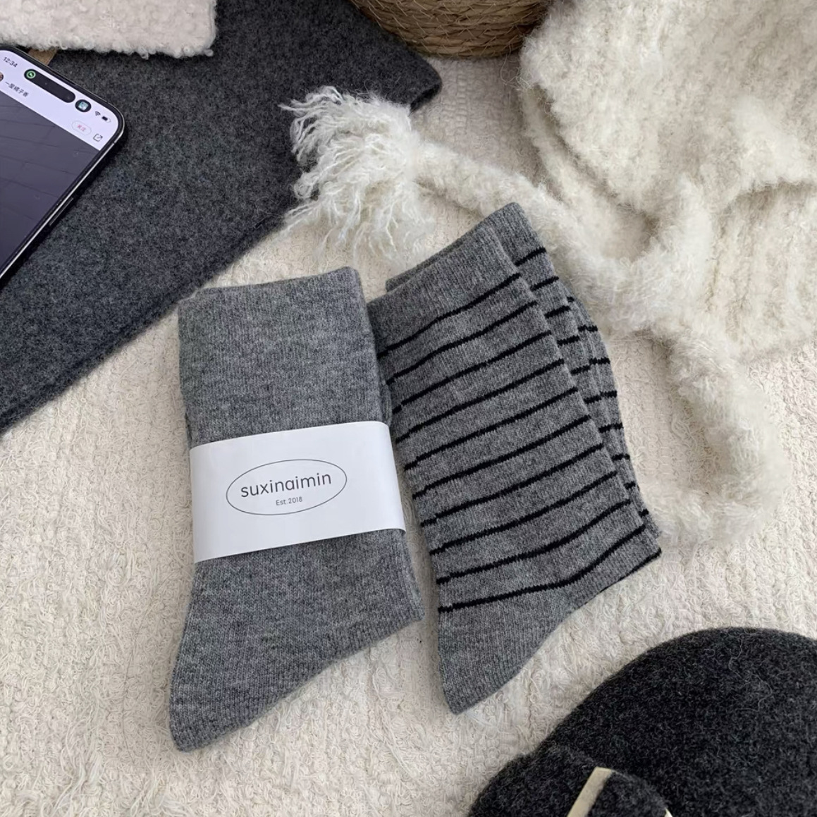 양모 따뜻한 양말 어린이 중간 길이 양말 가을과 겨울 두꺼운 기모 회색 봉제 귀여운 겨울 스타킹