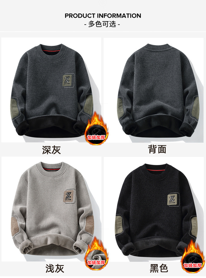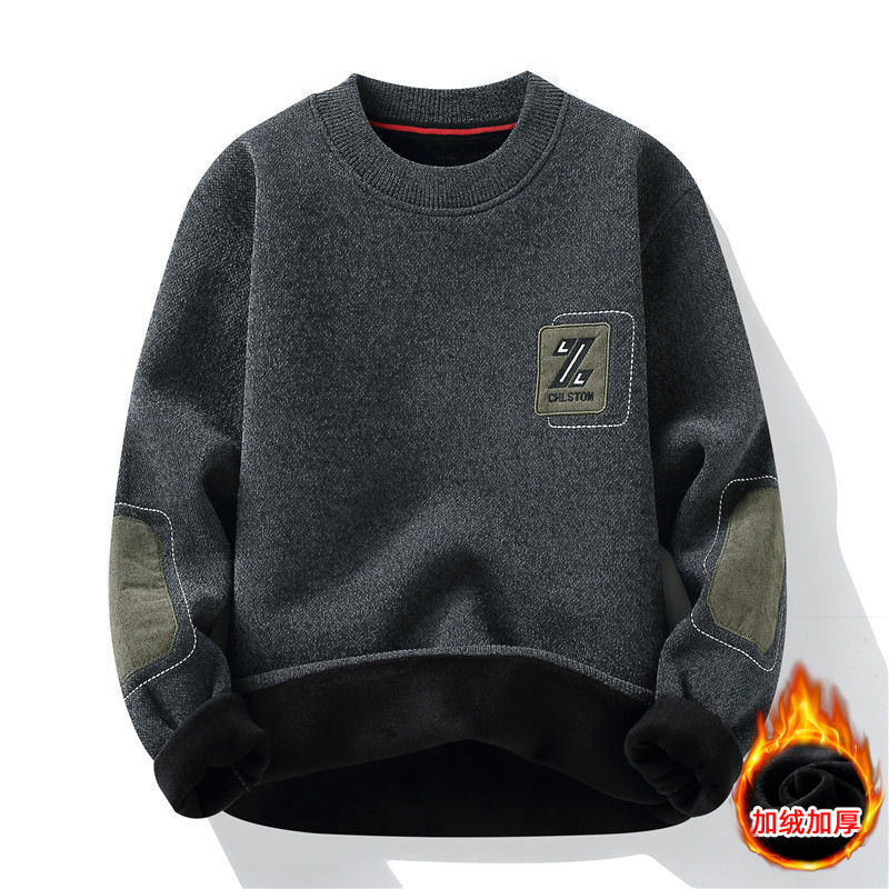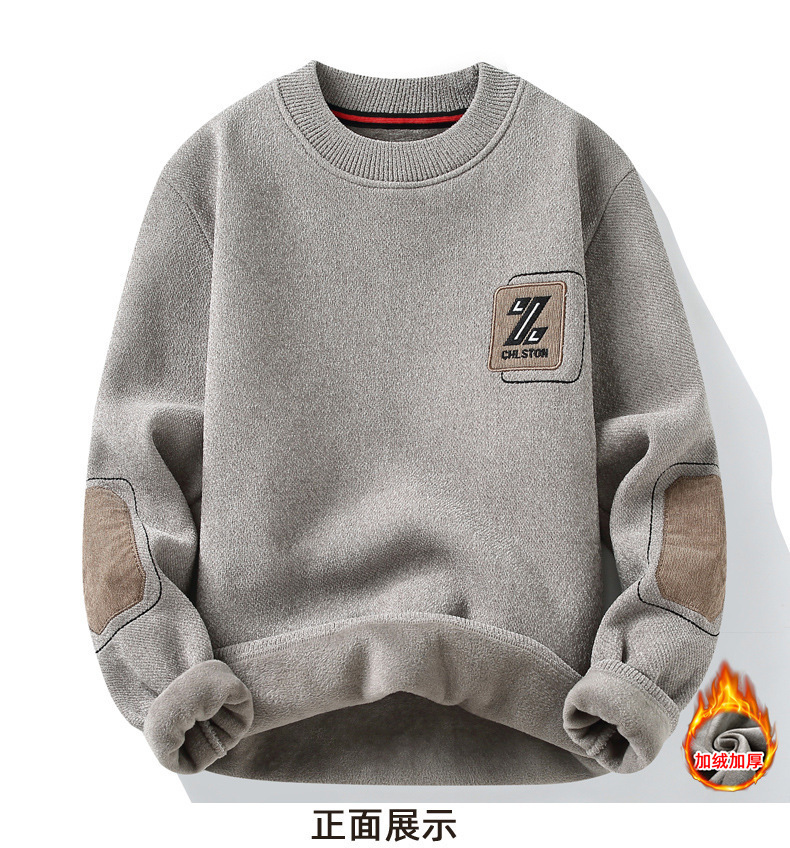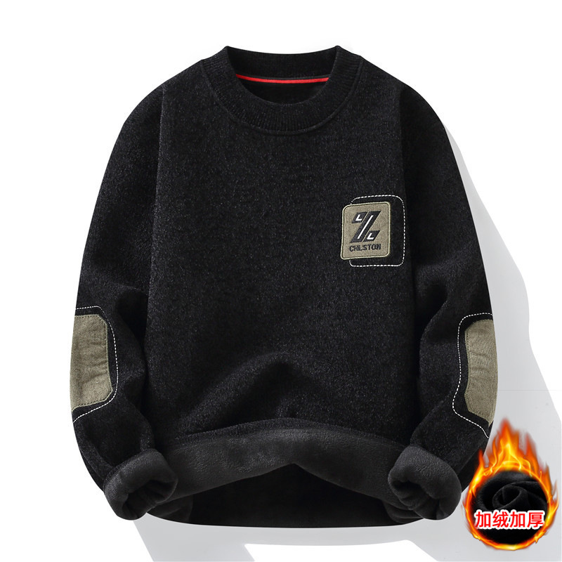 스웨터 남자 2024 가을 겨울 새 기모 두꺼운 원피스 벨벳 크루 넥베이스 셔츠 학생 따뜻한 조커스토어 가기