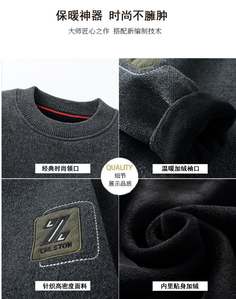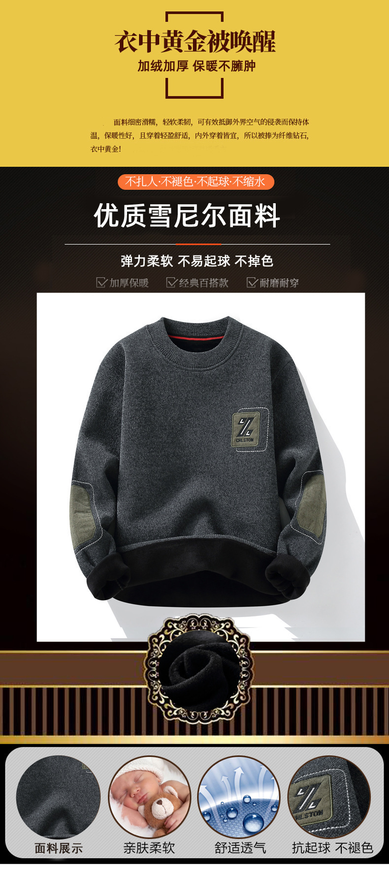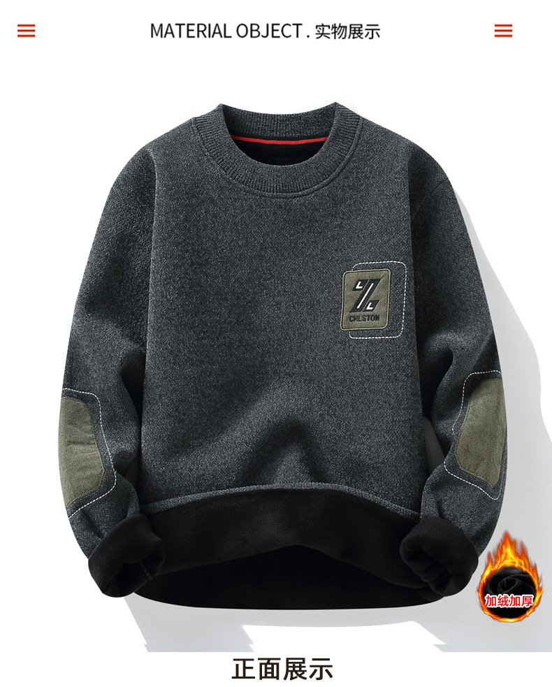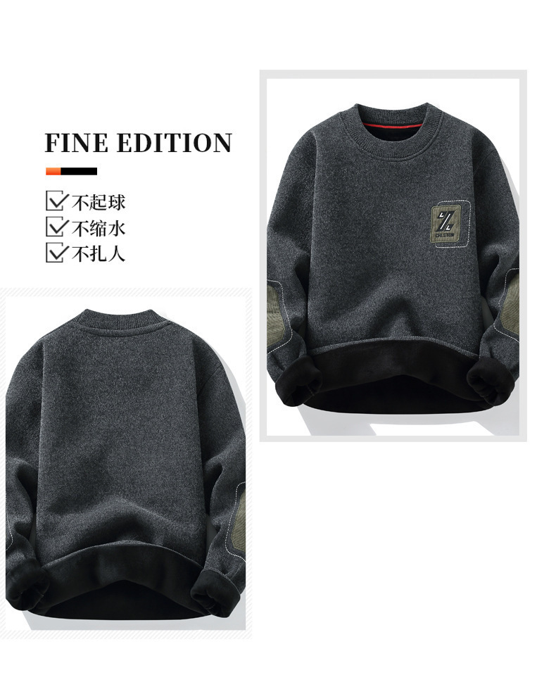 스웨터 남자 2024 가을 겨울 새 기모 두꺼운 원피스 벨벳 크루 넥베이스 셔츠 학생 따뜻한 조커스토어 가기