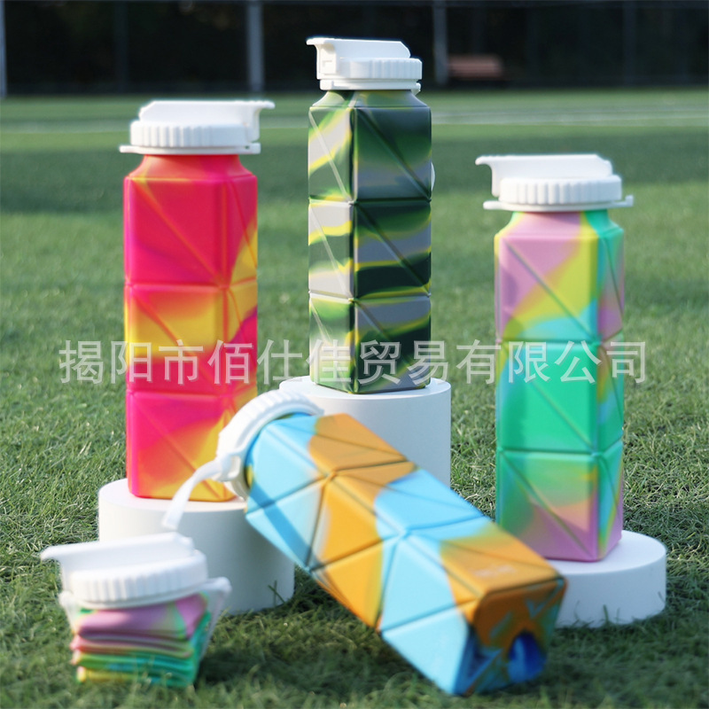 국경 간 실리콘 접이식 물 컵 대용량 물 컵 야외 휴대용 스포츠 물병 피트니스 사이클링 휴대용 컵 크리 에이 티브
