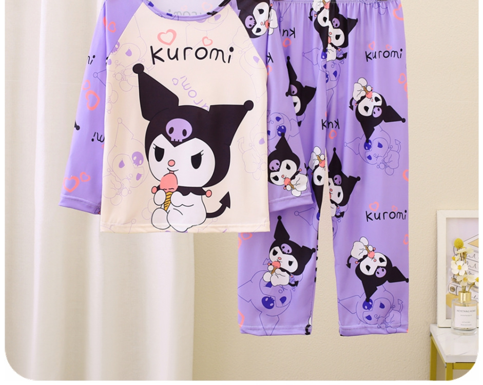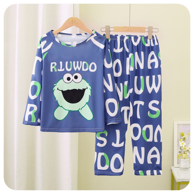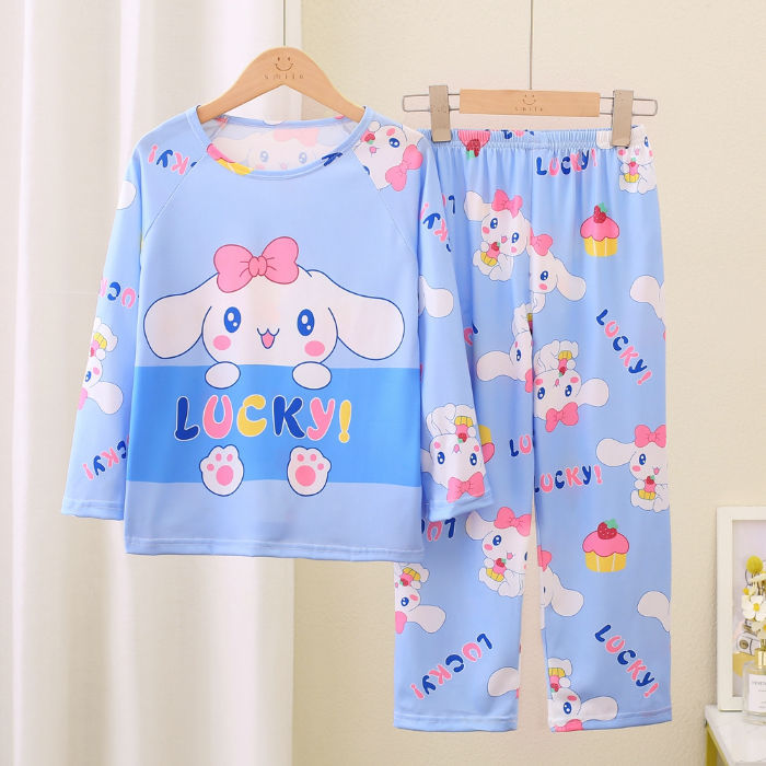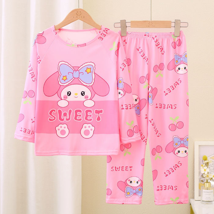 국경 2024 새로운 여아 잠옷 어린이 봄과 가을 긴 소매 세트 아기 소녀의 큰 어린이 가을 집 옷