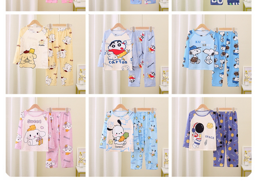 국경 2024 새로운 여아 잠옷 어린이 봄과 가을 긴 소매 세트 아기 소녀의 큰 어린이 가을 집 옷스토어 가기