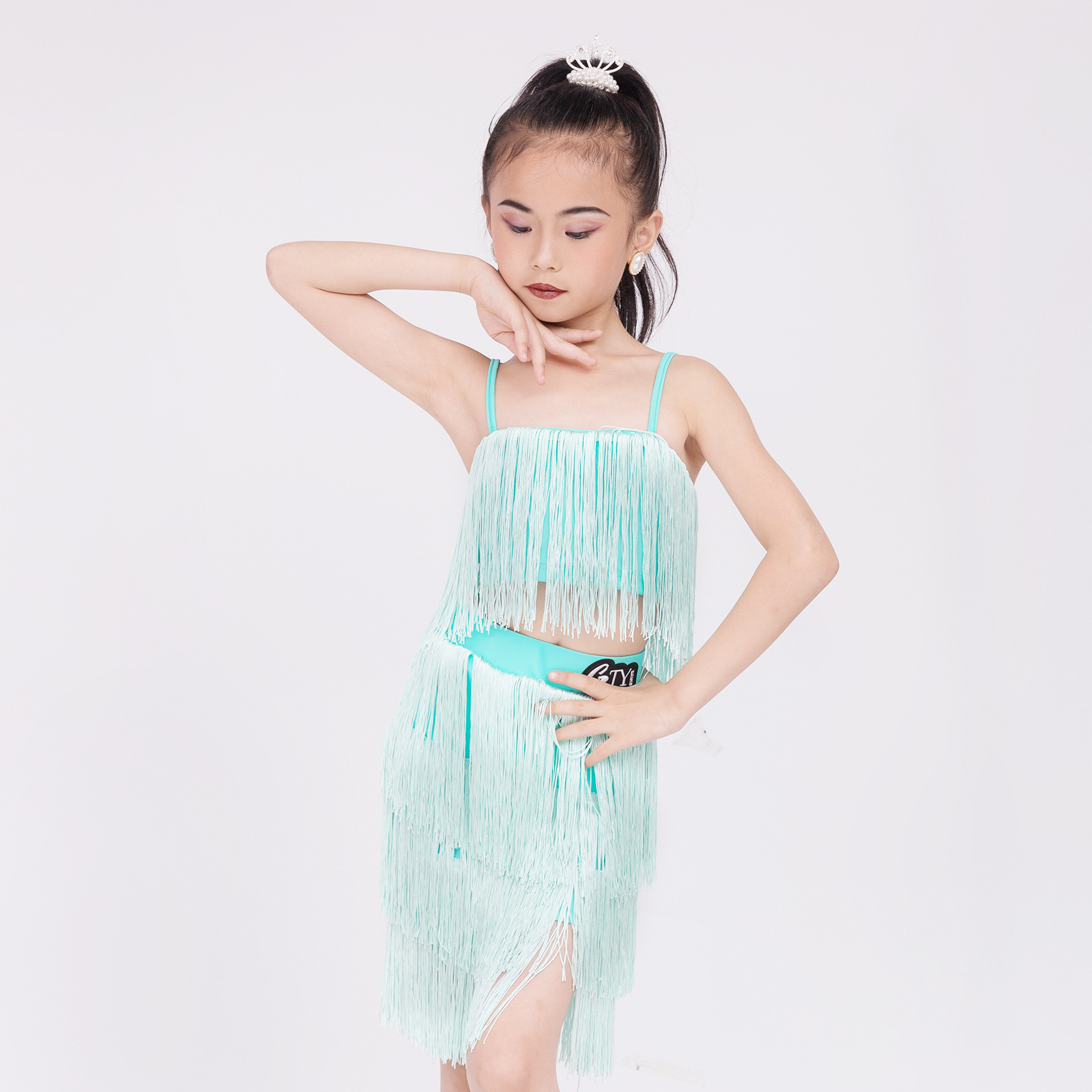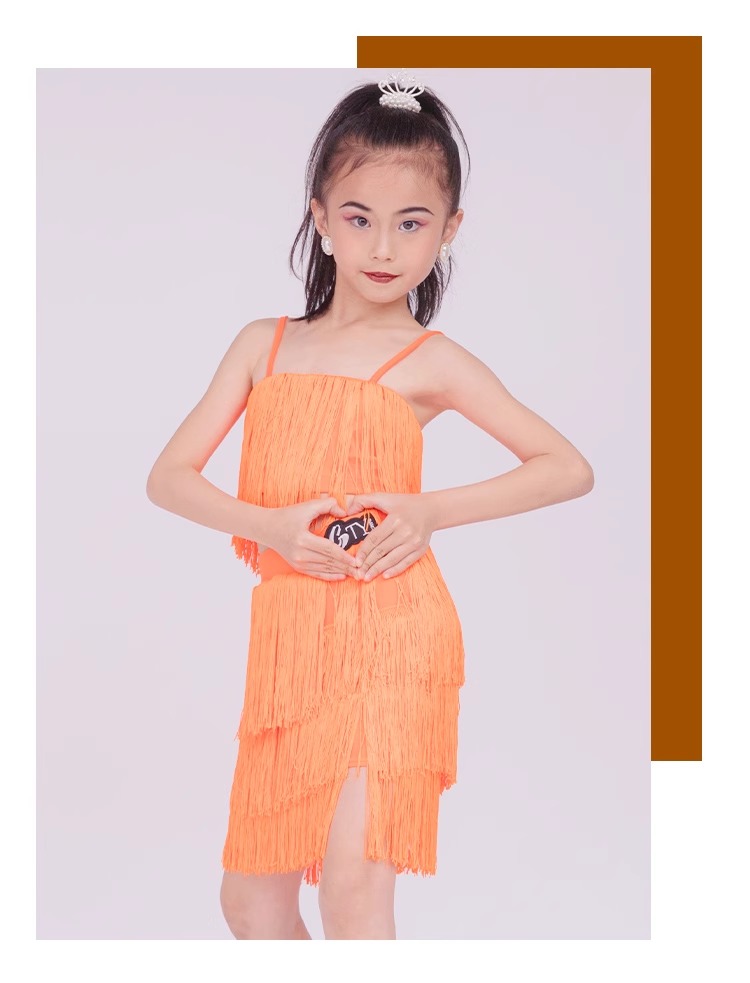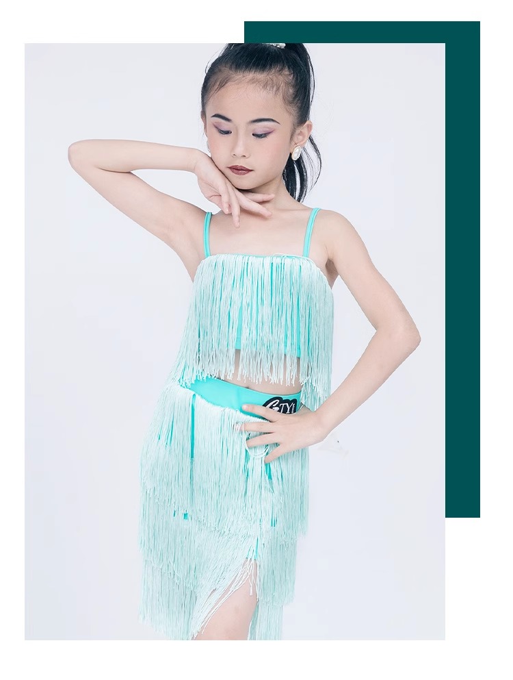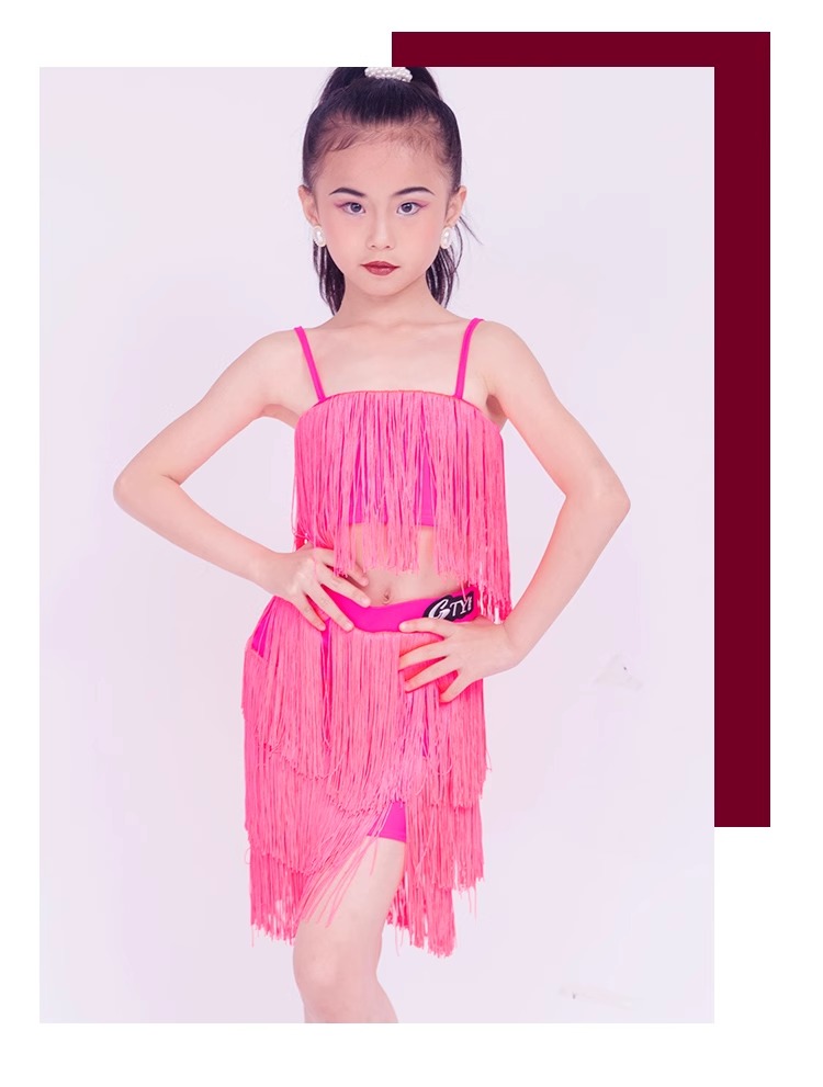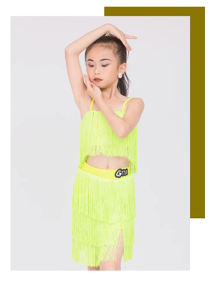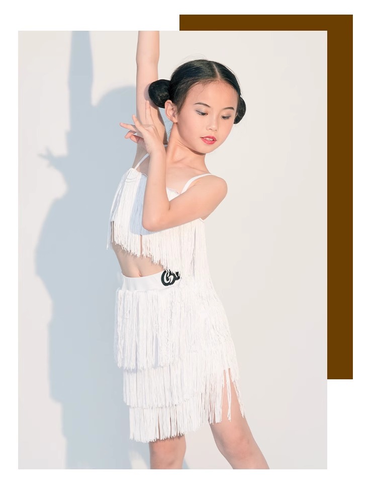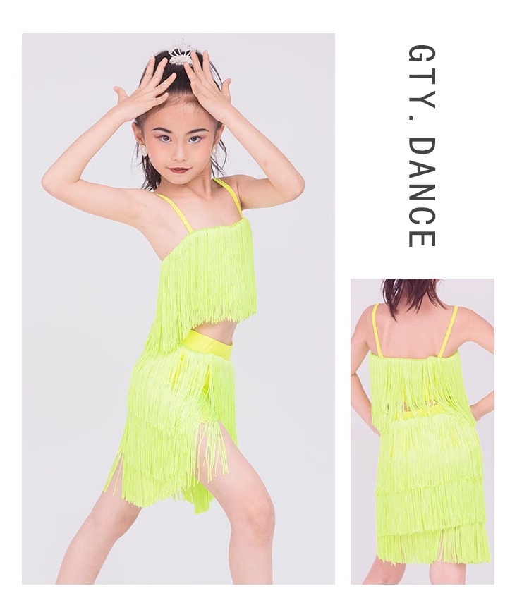 소녀를위한 우아한 라틴 댄스 옷 2024 새로운 여름 어린이 슬링 술 연습 옷 댄스 공연 옷