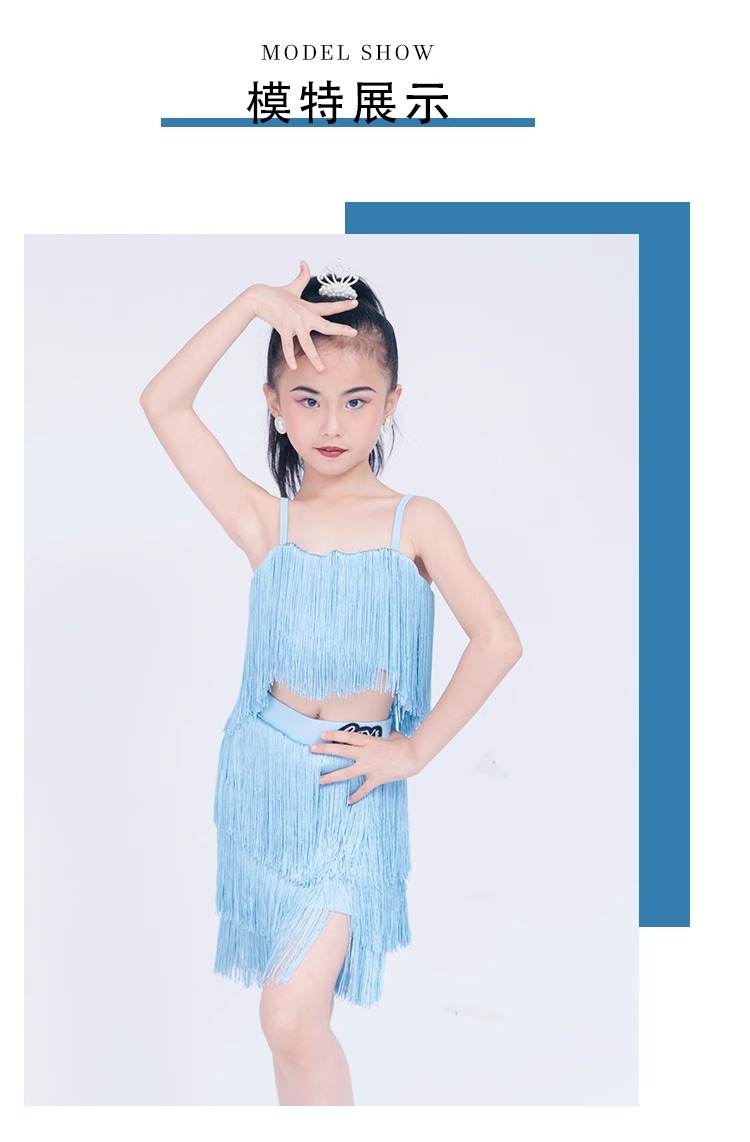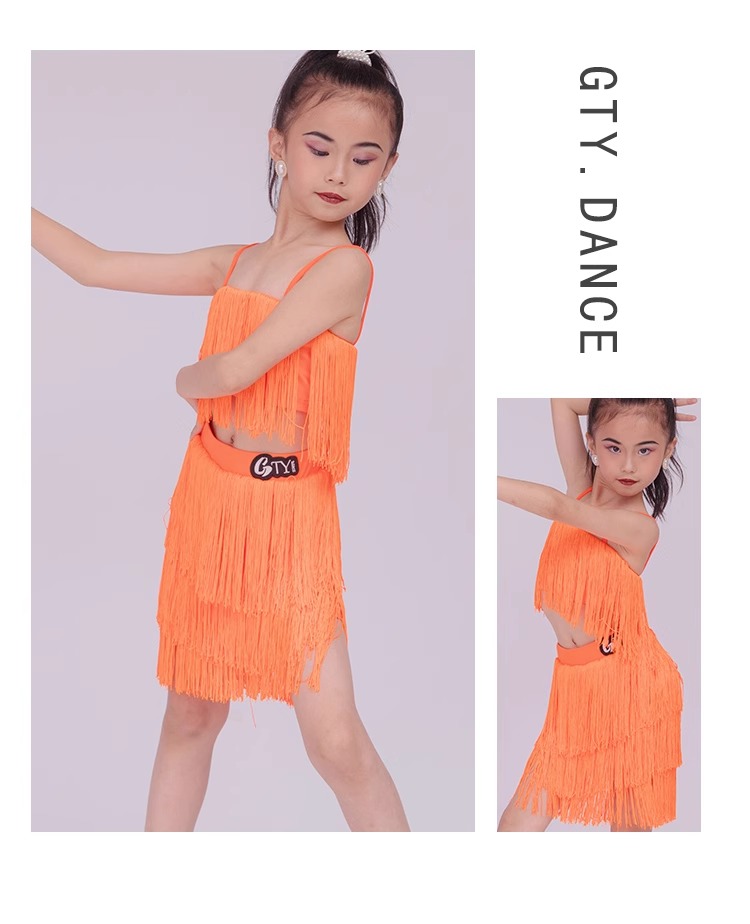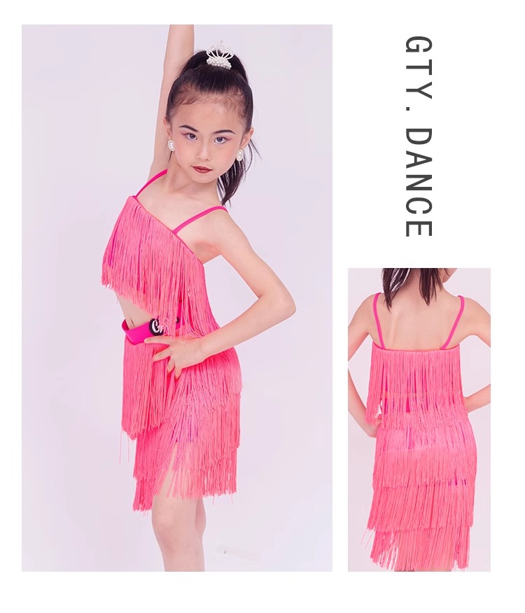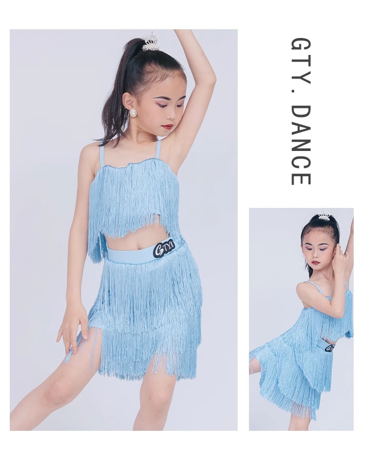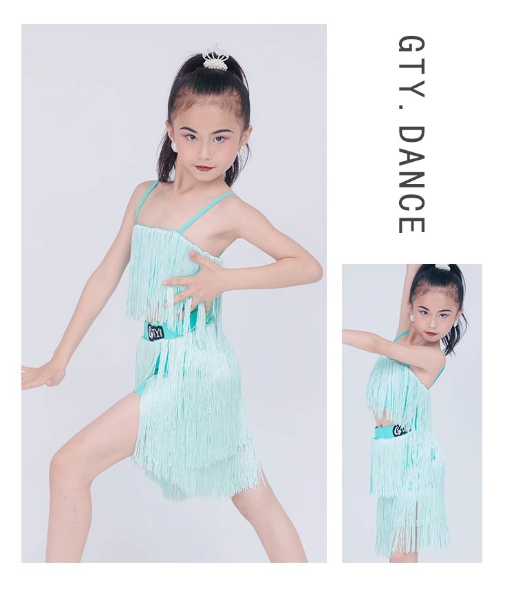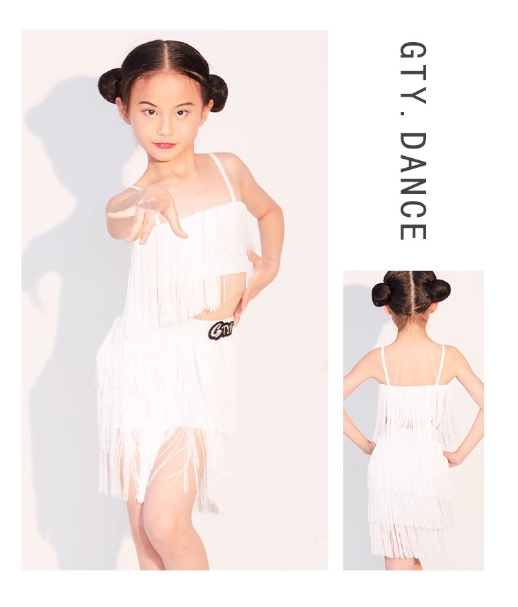 소녀를위한 우아한 라틴 댄스 옷 2024 새로운 여름 어린이 슬링 술 연습 옷 댄스 공연 옷스토어 가기