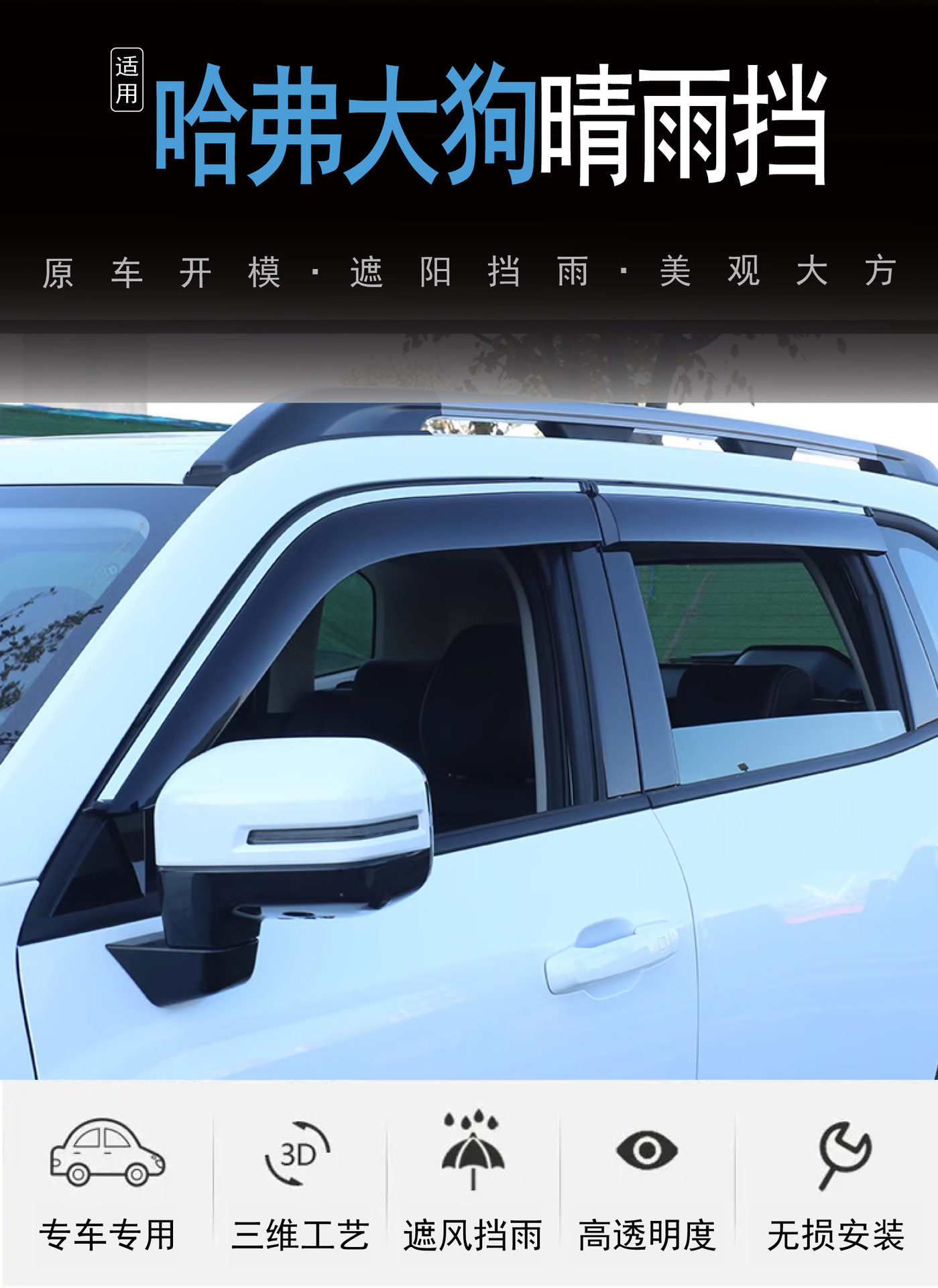 2020-2023 의 국경 간 응용 프로그램 Haver Dog Dargo 창 커버 비 방지 아크릴 자동차 비 방패