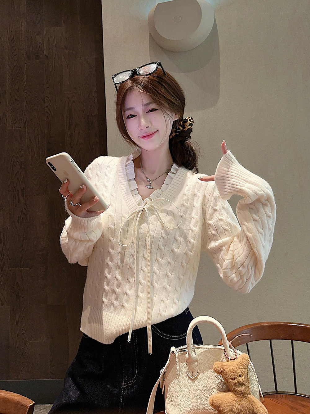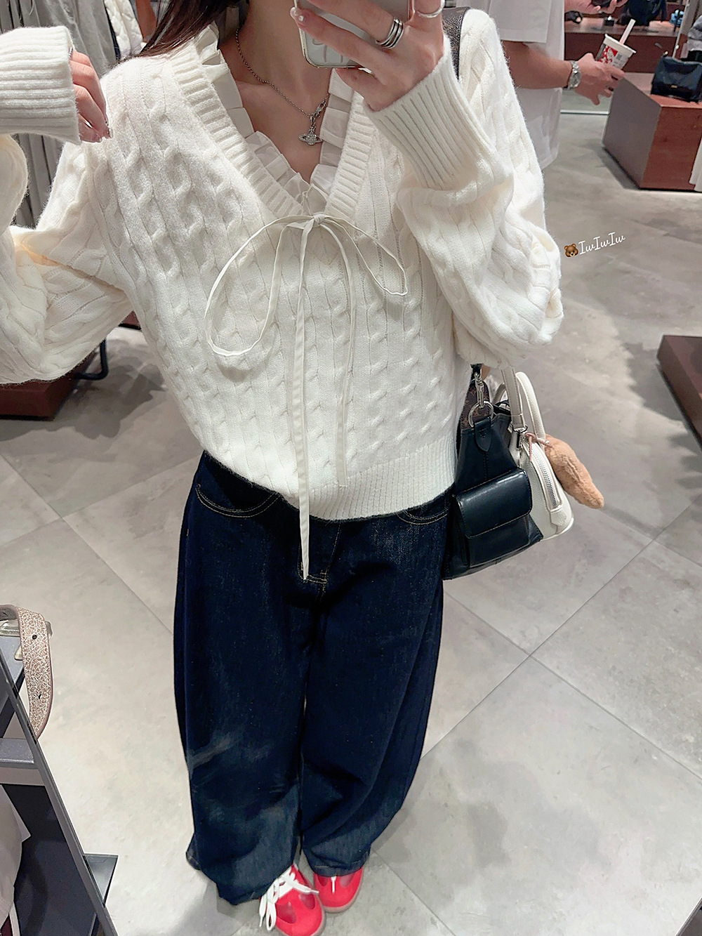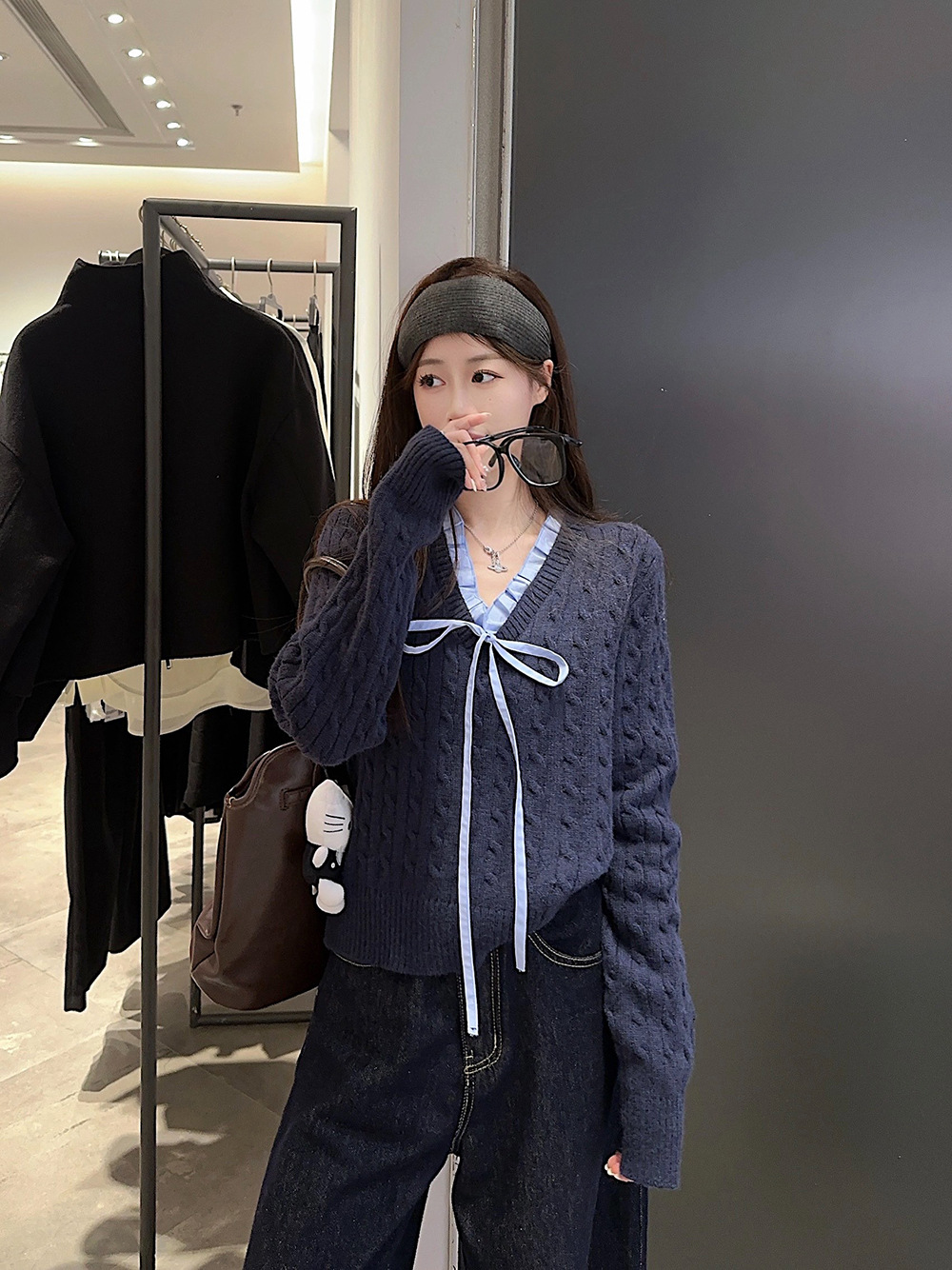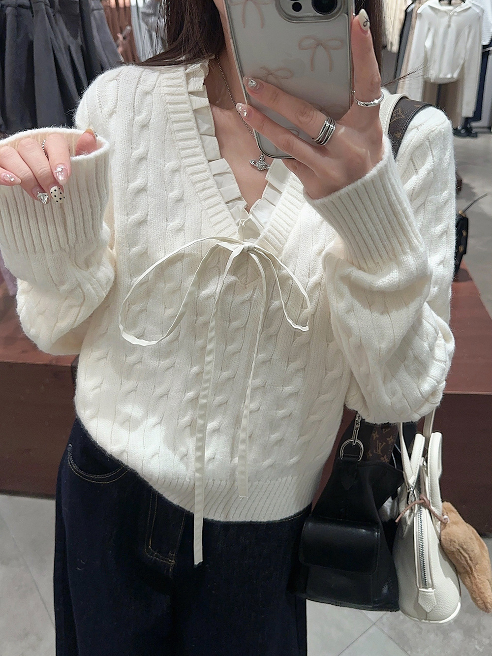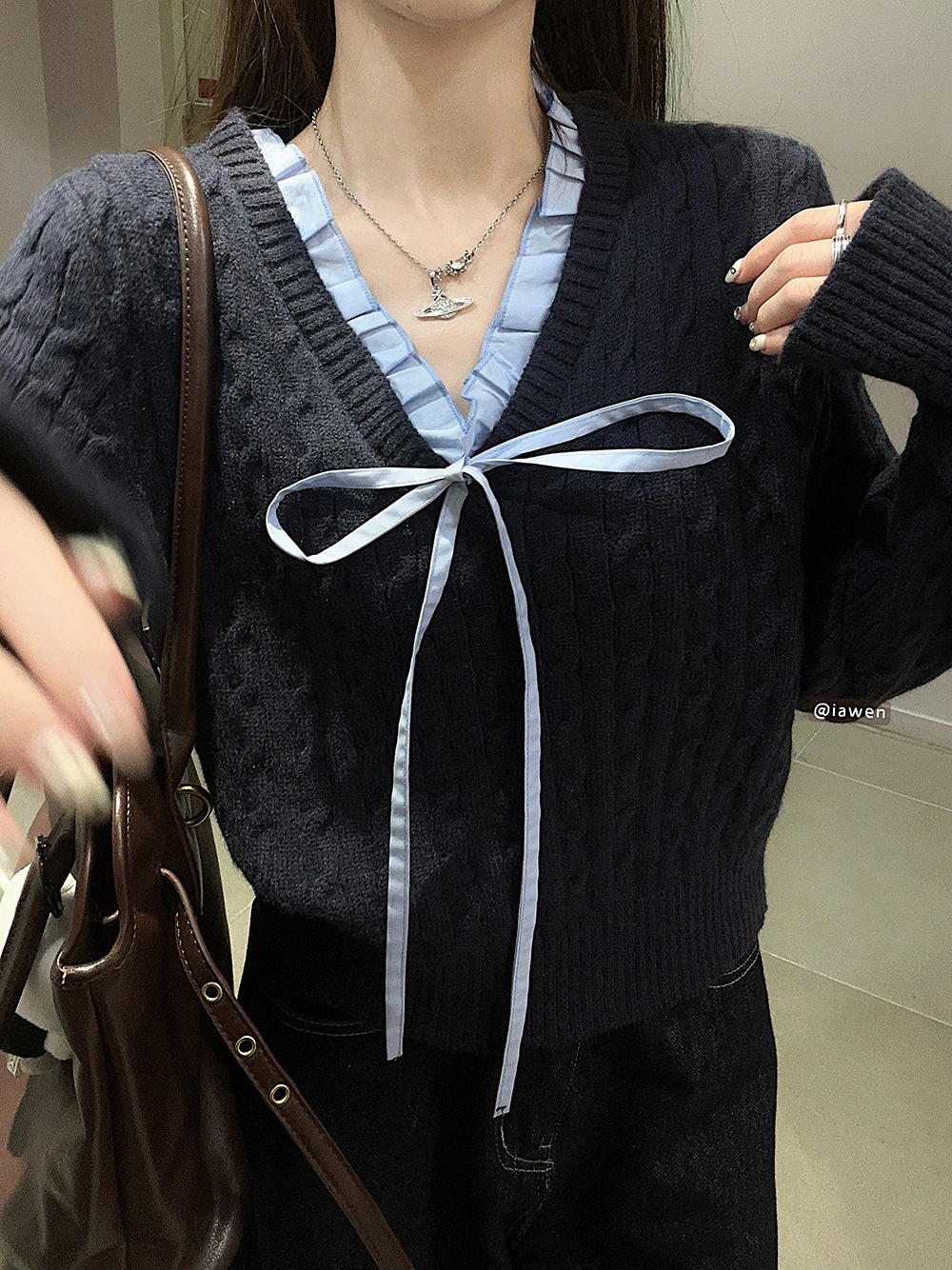 실사~ 여성용 꼬임 니트 2025 봄 신상 레이지 스타일 페이크 투피스 스플라이스 니트 73780스토어 가기