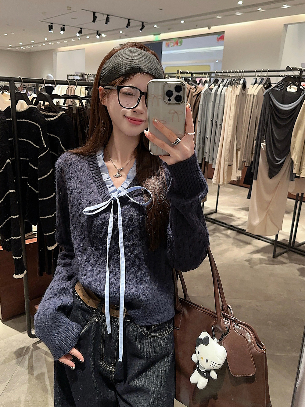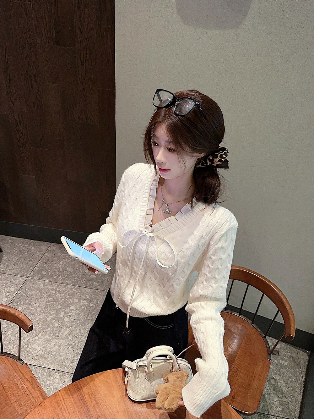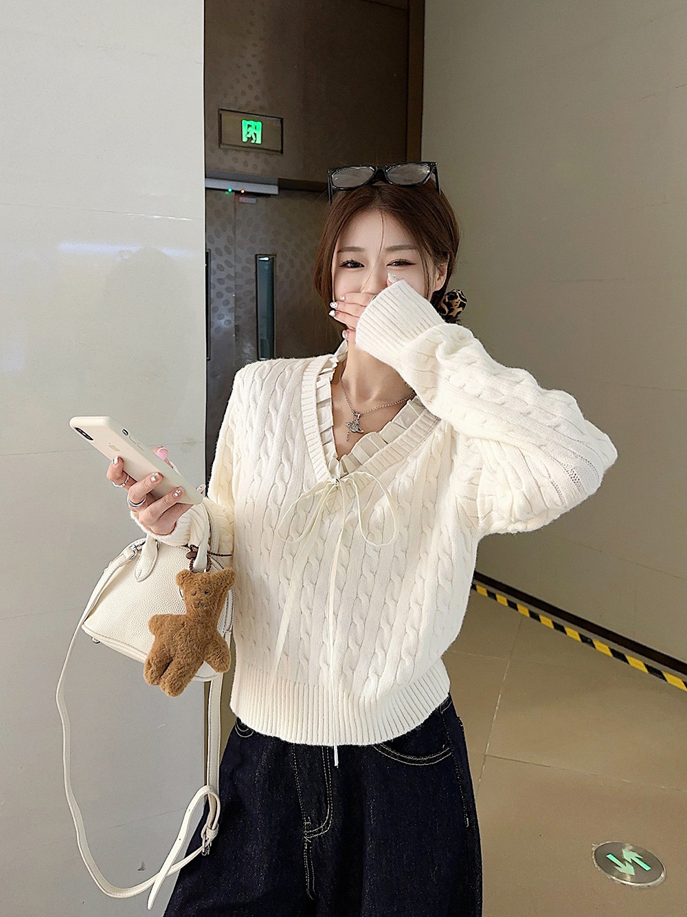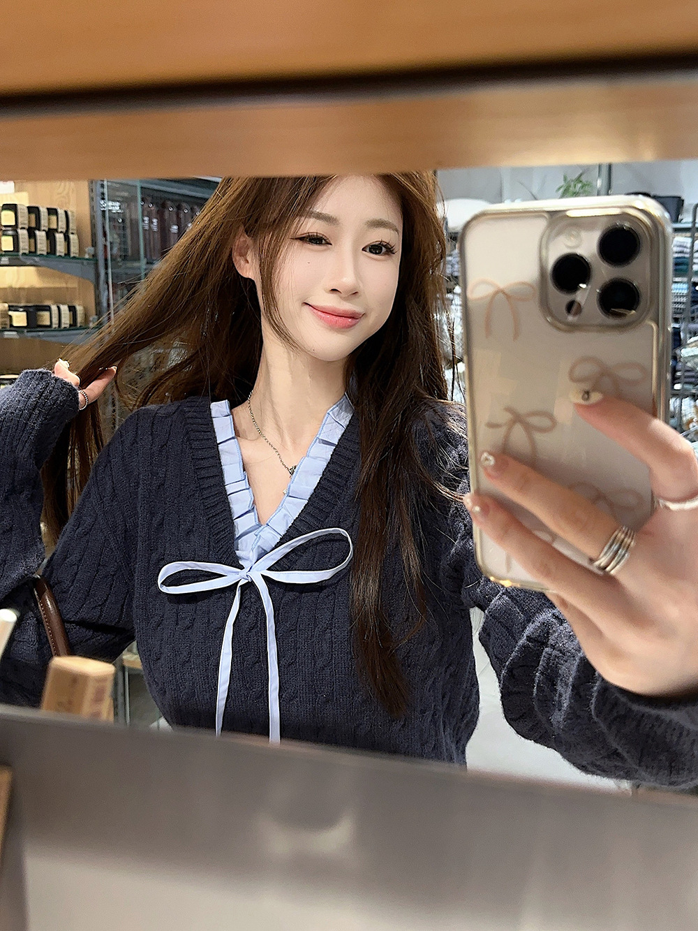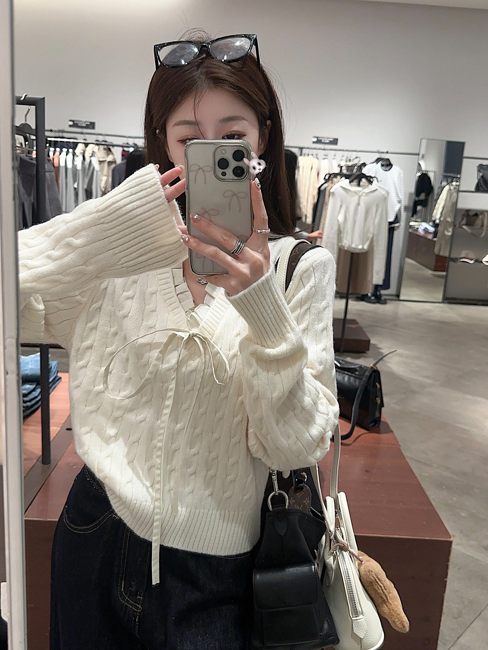 실사~ 여성용 꼬임 니트 2025 봄 신상 레이지 스타일 페이크 투피스 스플라이스 니트 73780스토어 가기