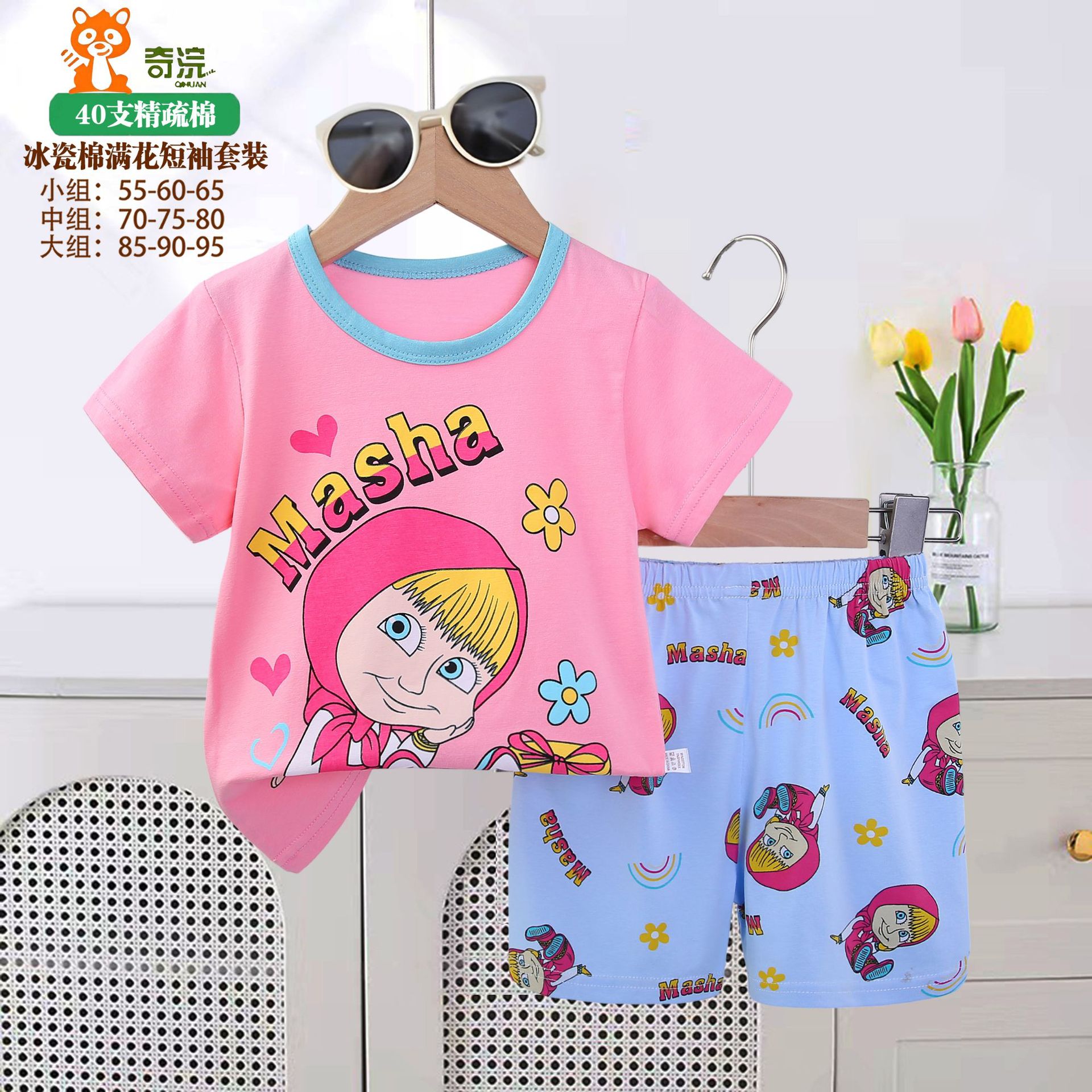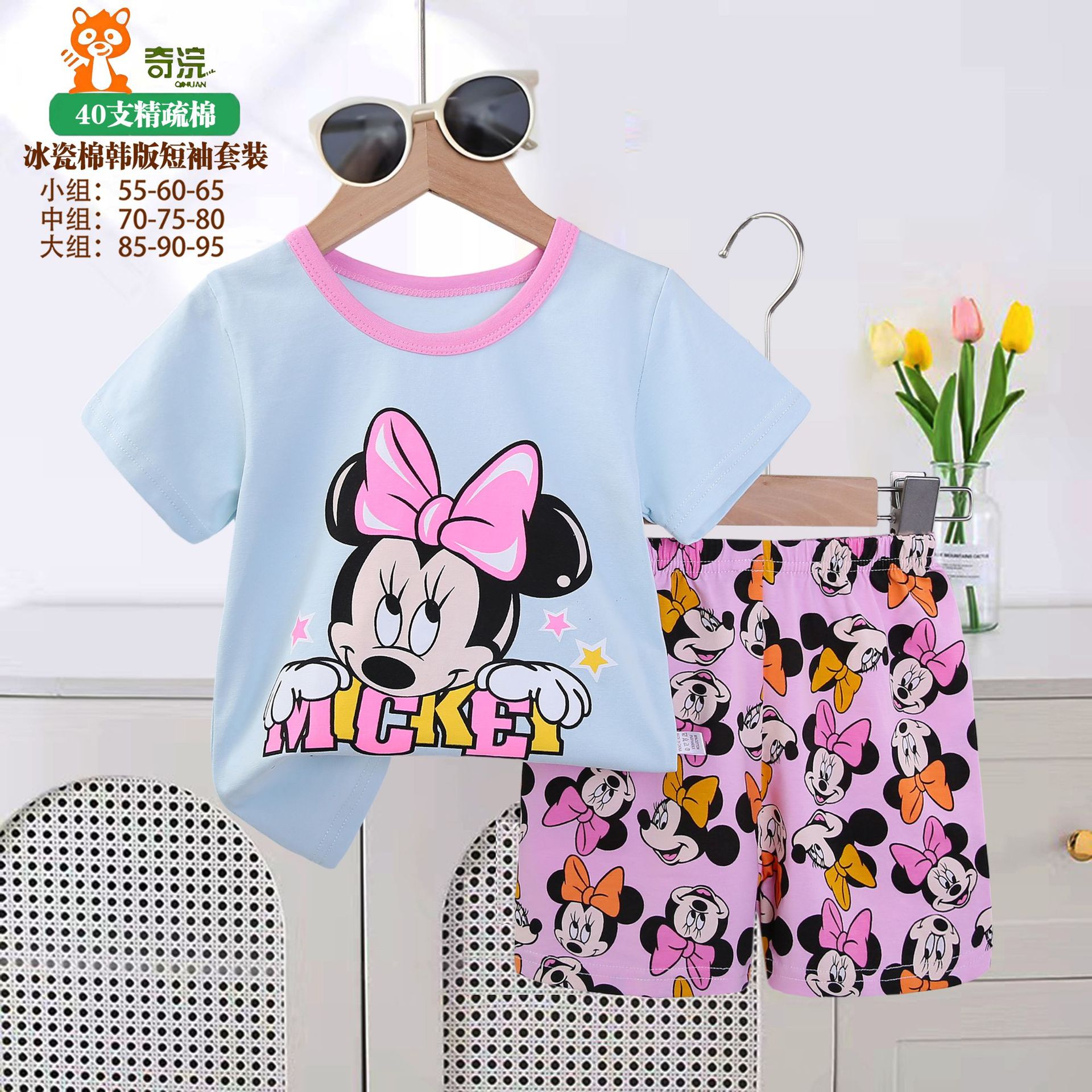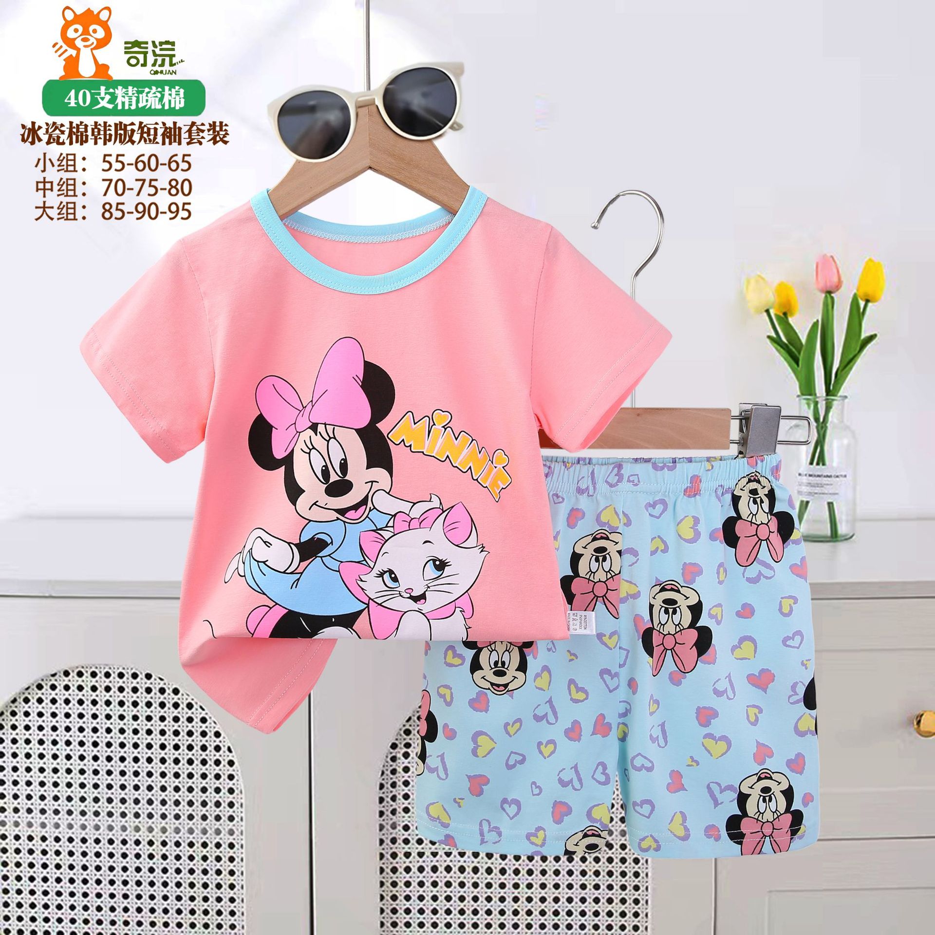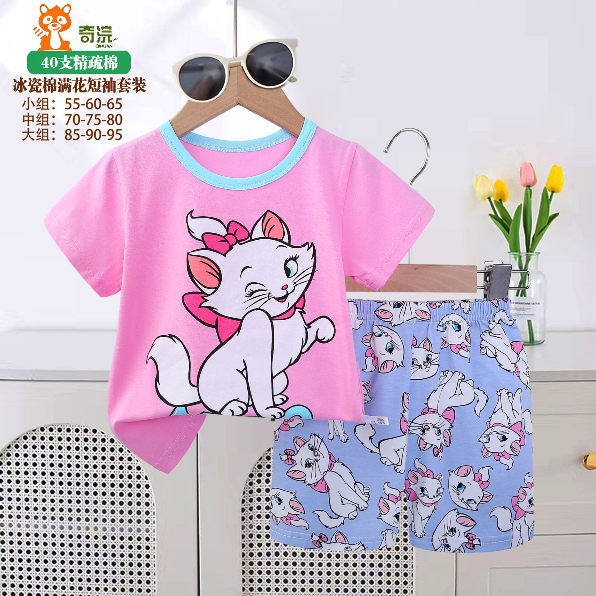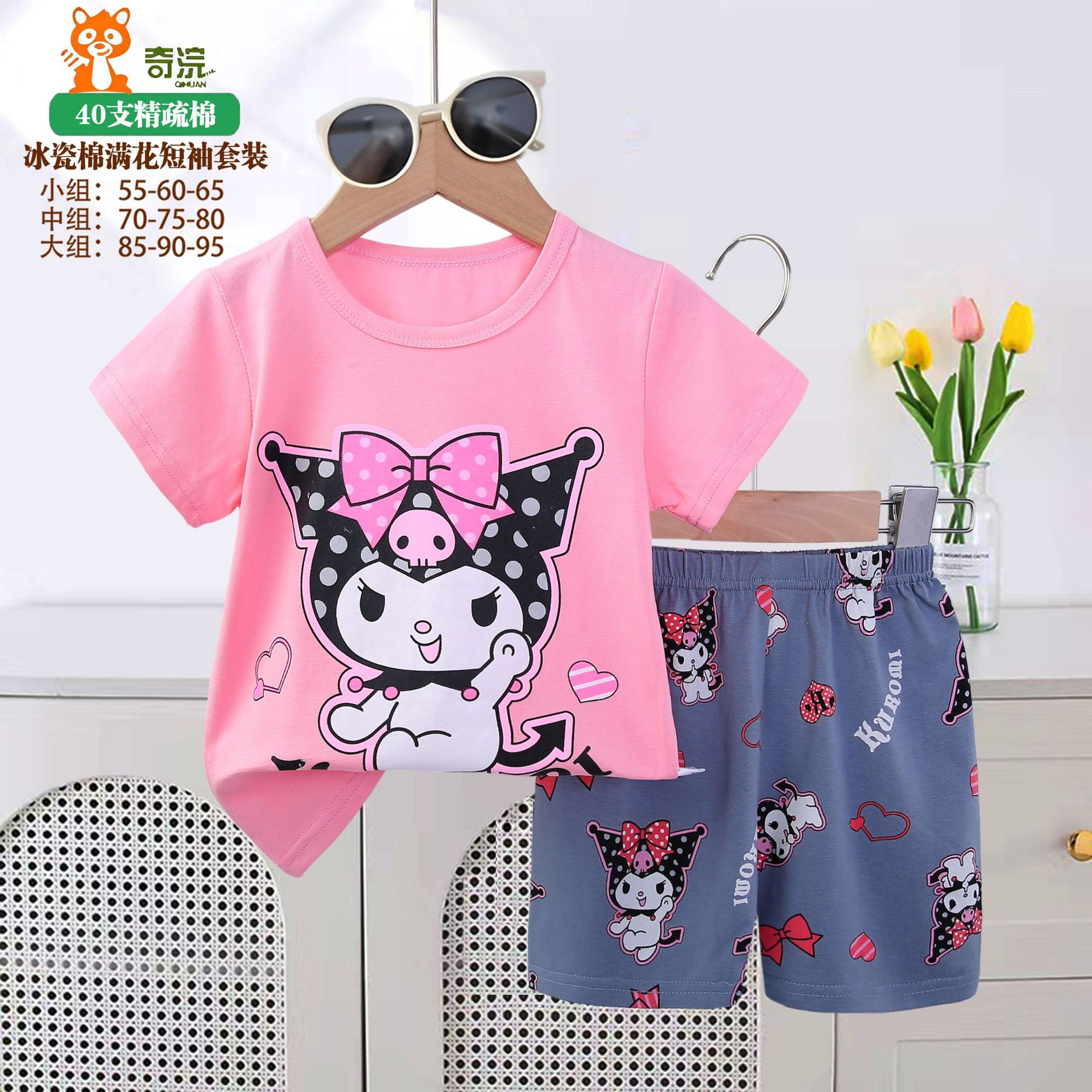 산리오 여아 여름 홈웨어 잠옷 얇은 순면 아동 반팔 반바지 에어컨 옷 동남아시아 신상품