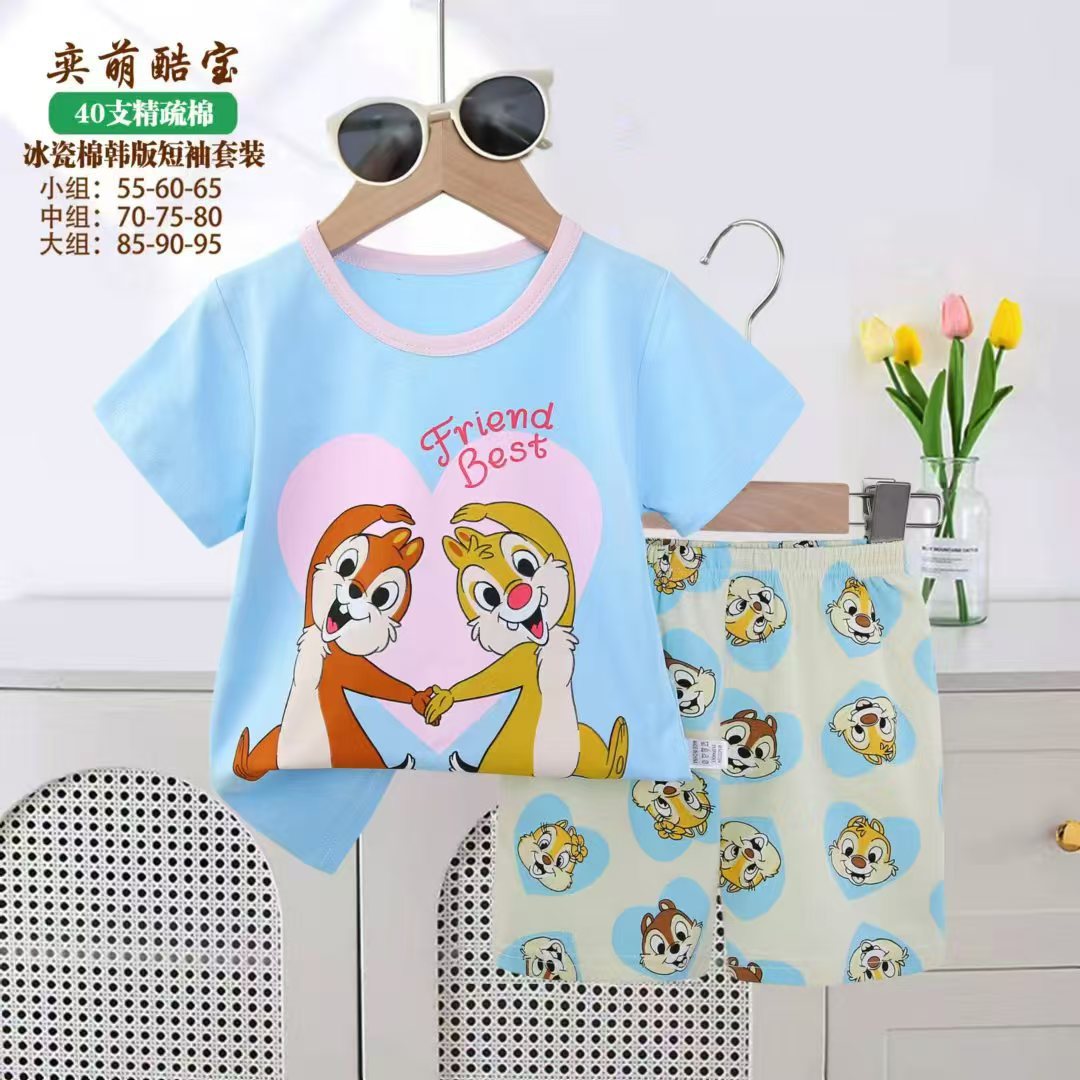 산리오 여아 여름 홈웨어 잠옷 얇은 순면 아동 반팔 반바지 에어컨 옷 동남아시아 신상품스토어 가기