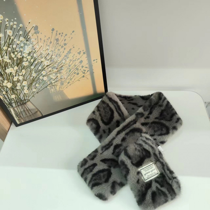 겨울 스카프 여성 봉제 두꺼운 따뜻한 스카프 모방 토끼 모피 크로스 스카프 한국식 스카프 패션 레오파드 무늬 스카프