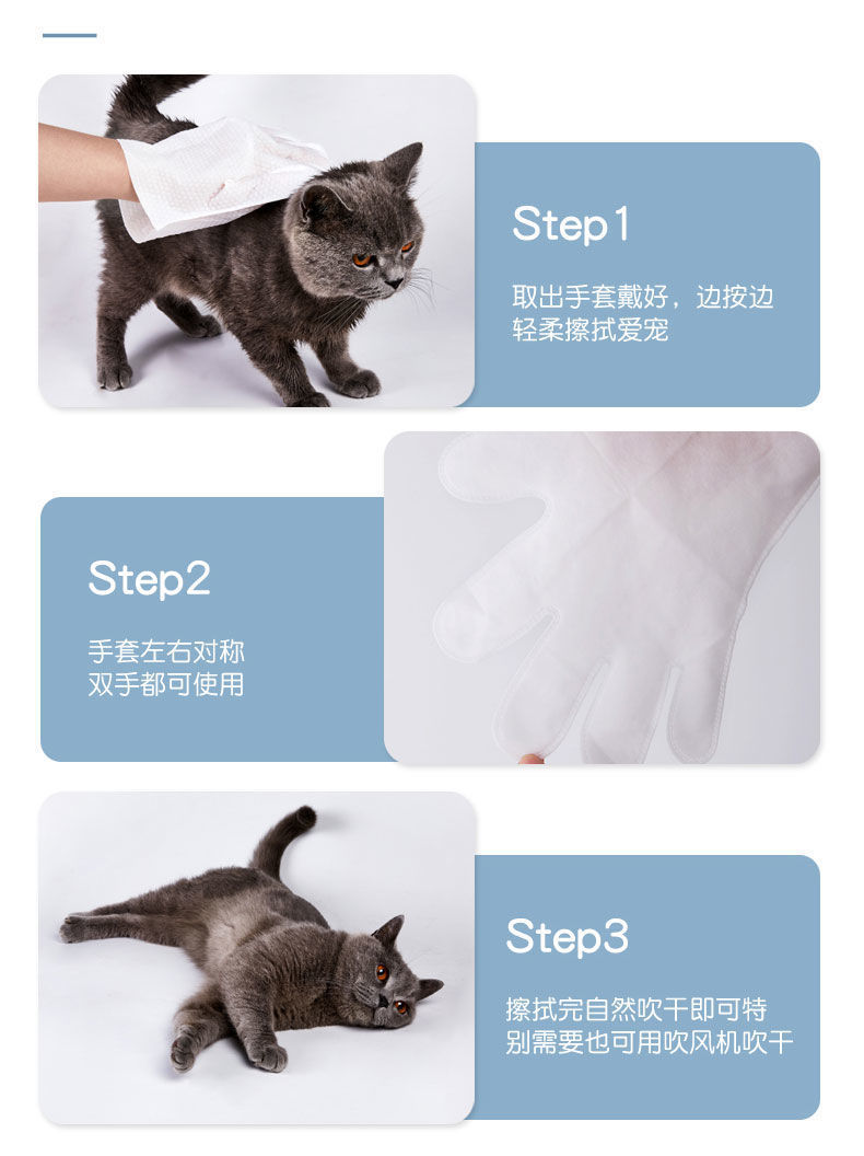 애완 동물 고양이 개 씻지 않는 장갑 고양이 청소 드라이 클리닝 용품 젖은 물티슈 살균 탈취제 엉덩이 닦기