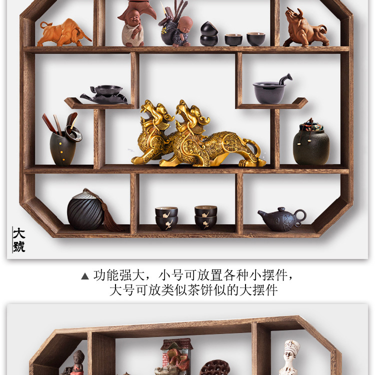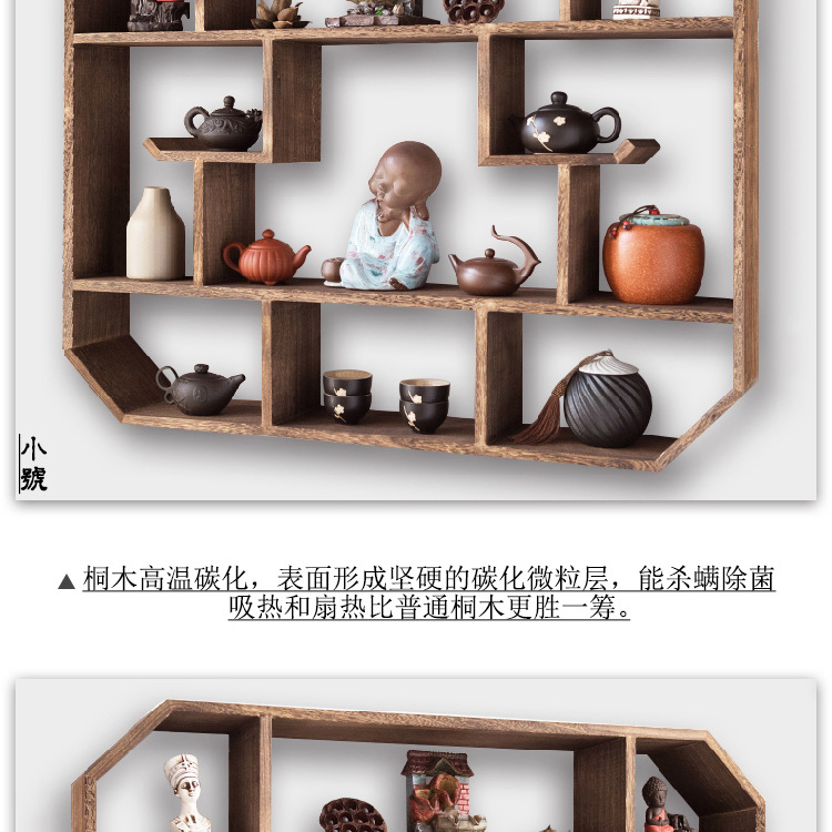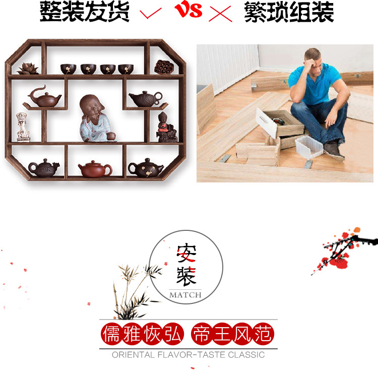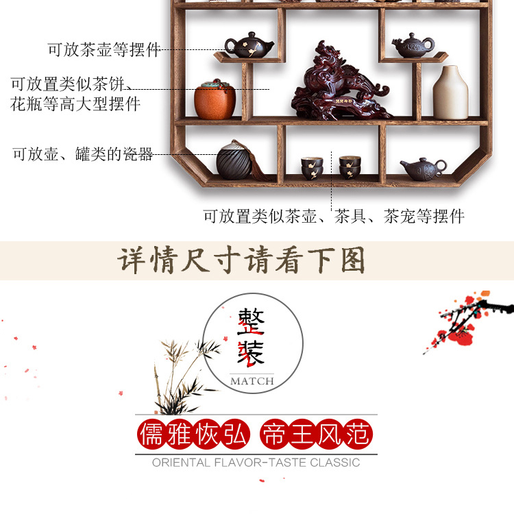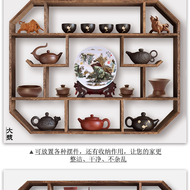 Bogu 랙 솔리드 우드 중국 스타일 벽걸이 형 거실 보관 랙 솔리드 우드 티 세트 주전자 랙 벽걸이 형 보핑 런스토어 가기