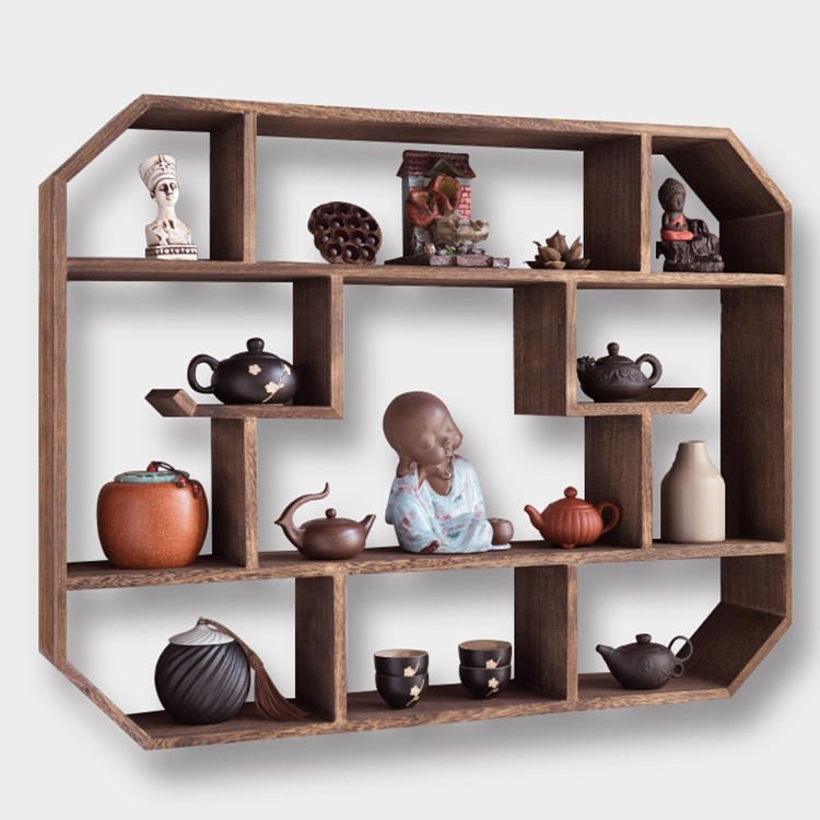 Bogu 랙 솔리드 우드 중국 스타일 벽걸이 형 거실 보관 랙 솔리드 우드 티 세트 주전자 랙 벽걸이 형 보핑 런