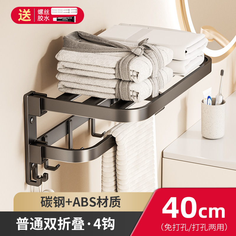 • 40CM 건 그레이 업그레이드 이중 접이식 수건 걸이(후크 포함)