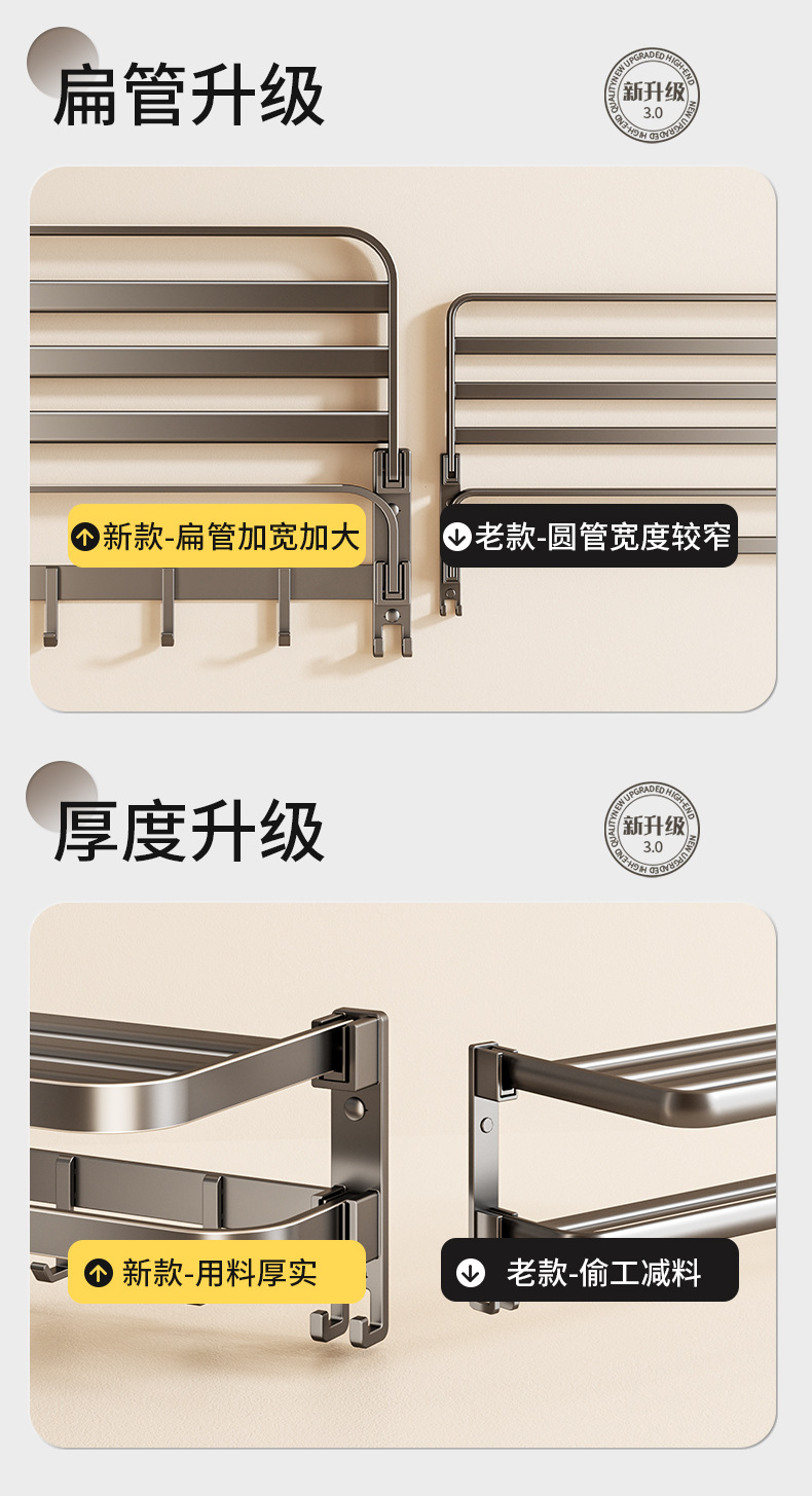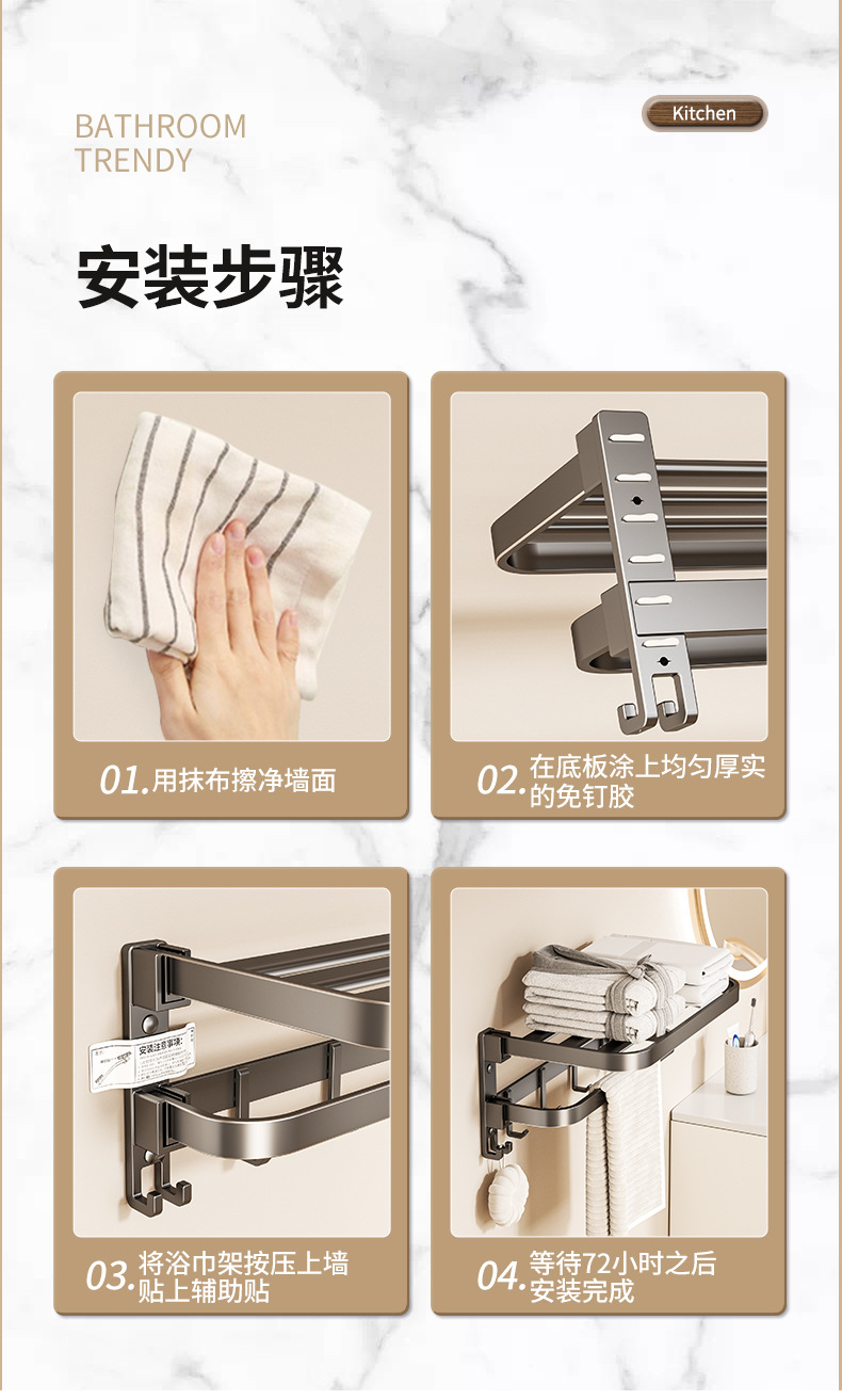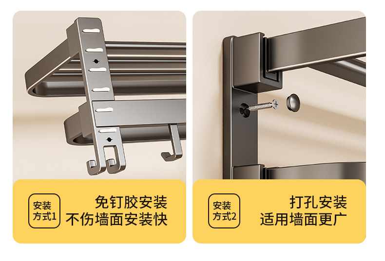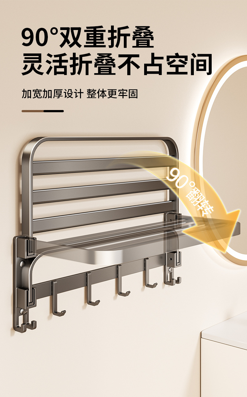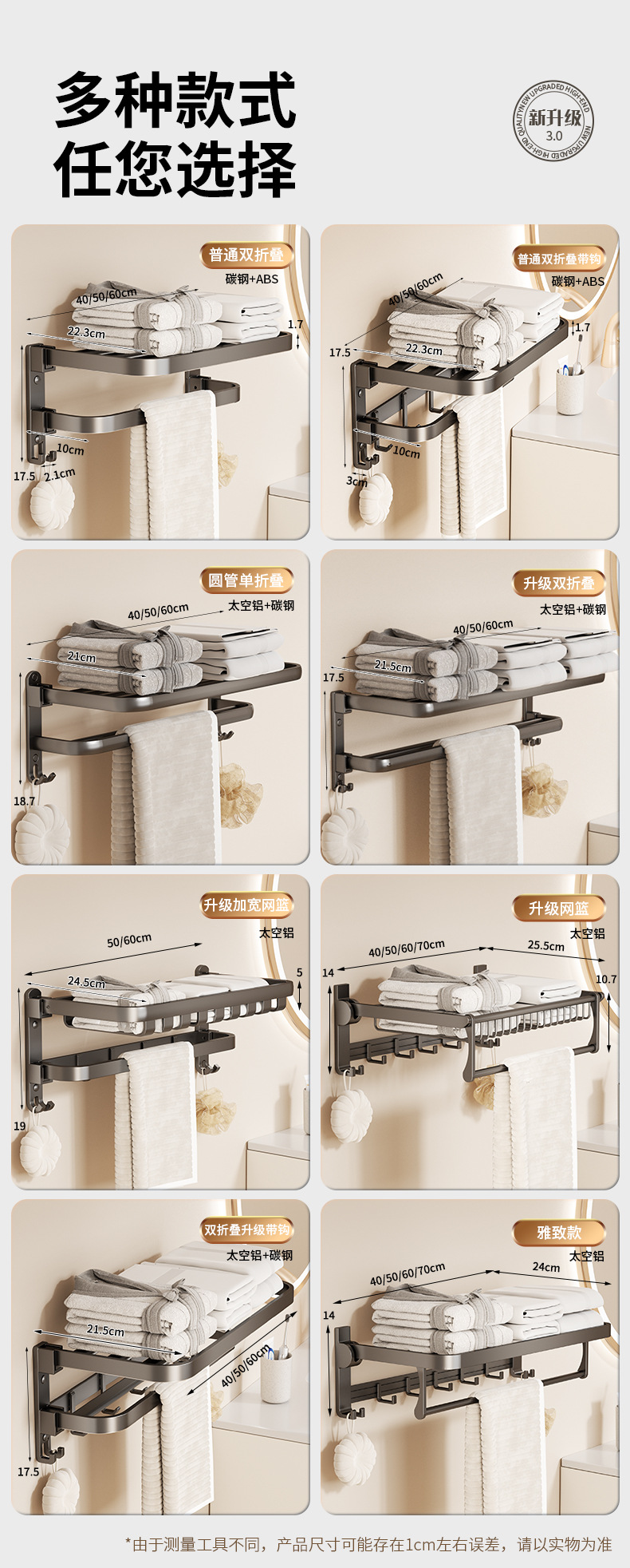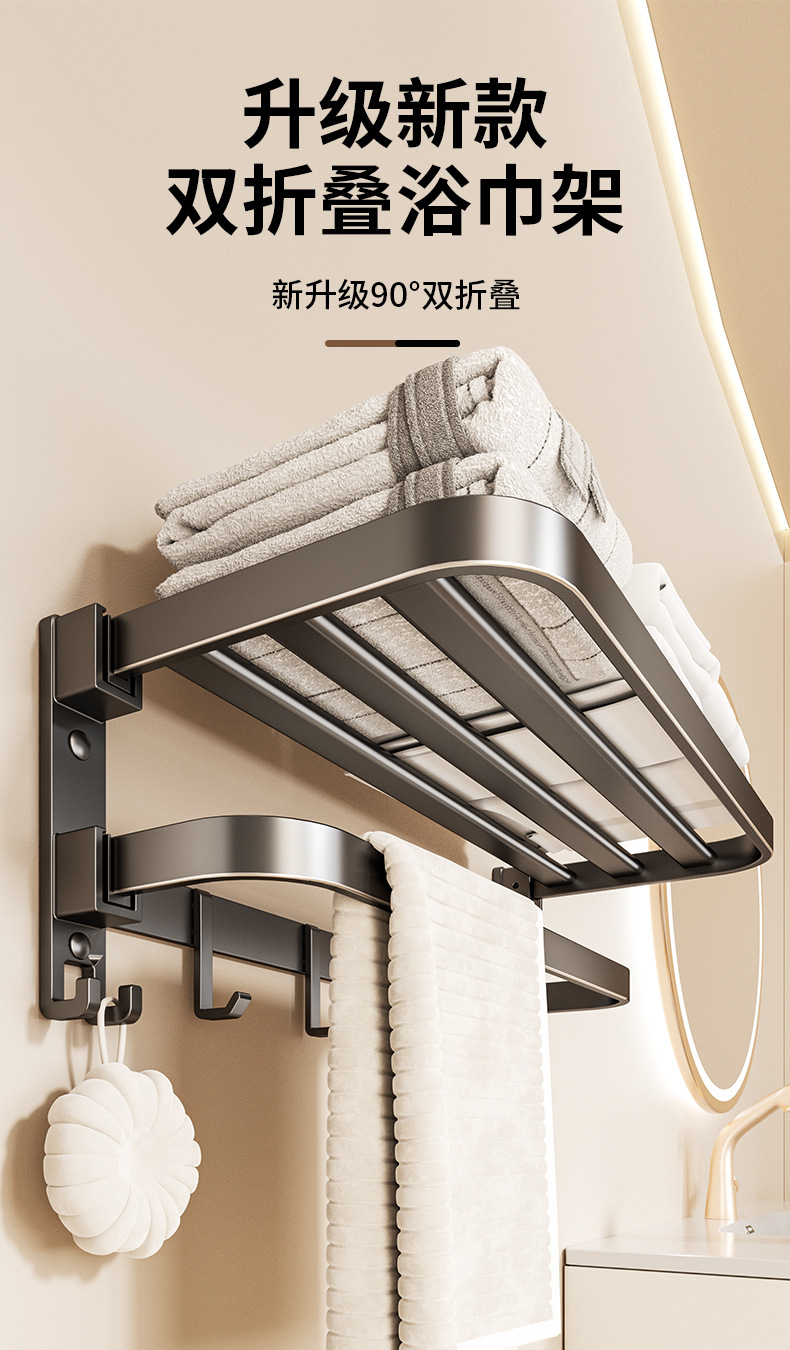 • 50CM 건 그레이 업그레이드 이중 접이식 목욕 수건 걸이