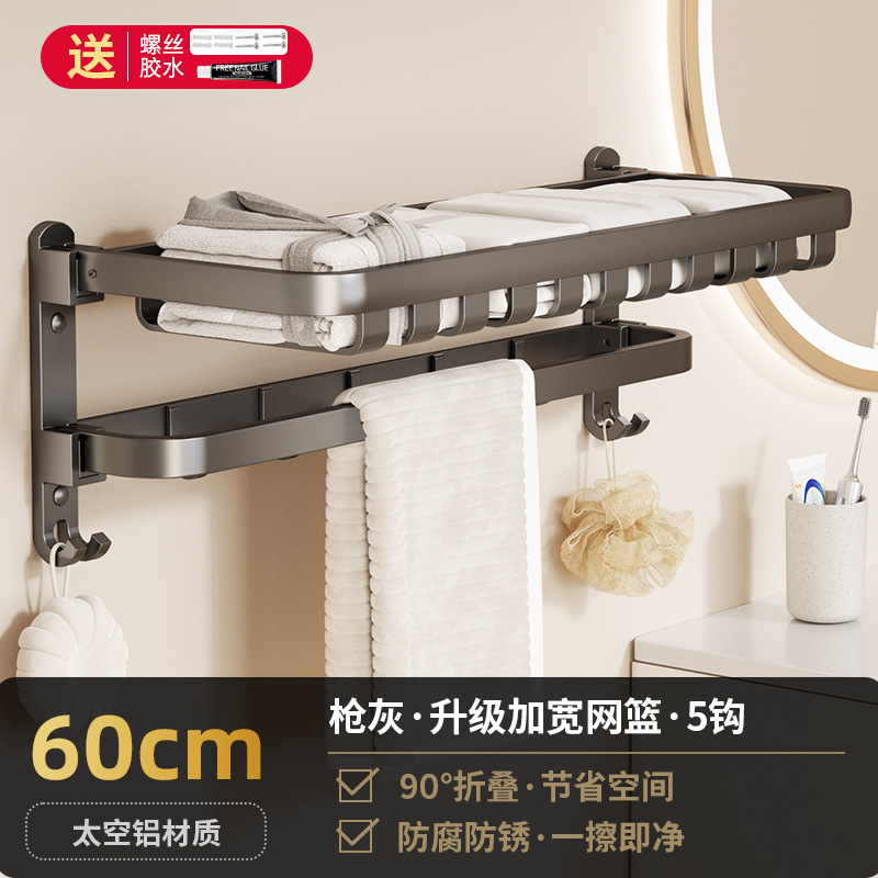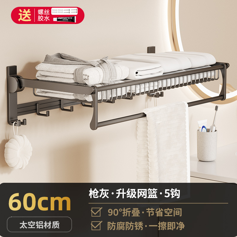 • 60CM 건 그레이 스페이스 알루미늄 접이식 메쉬 바구니 수건 걸이