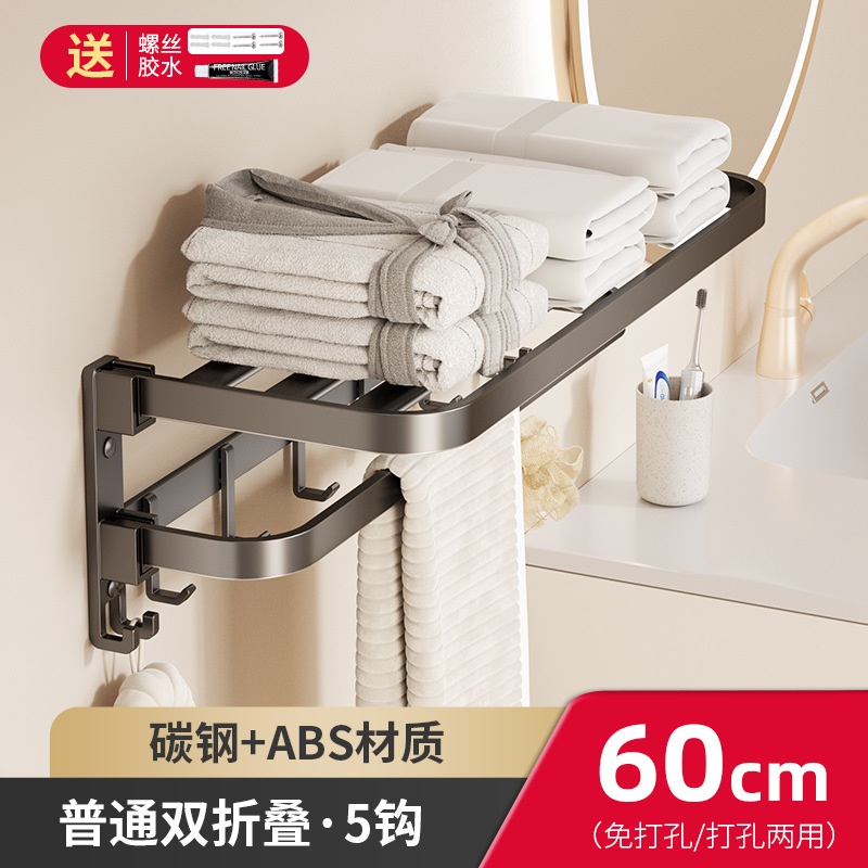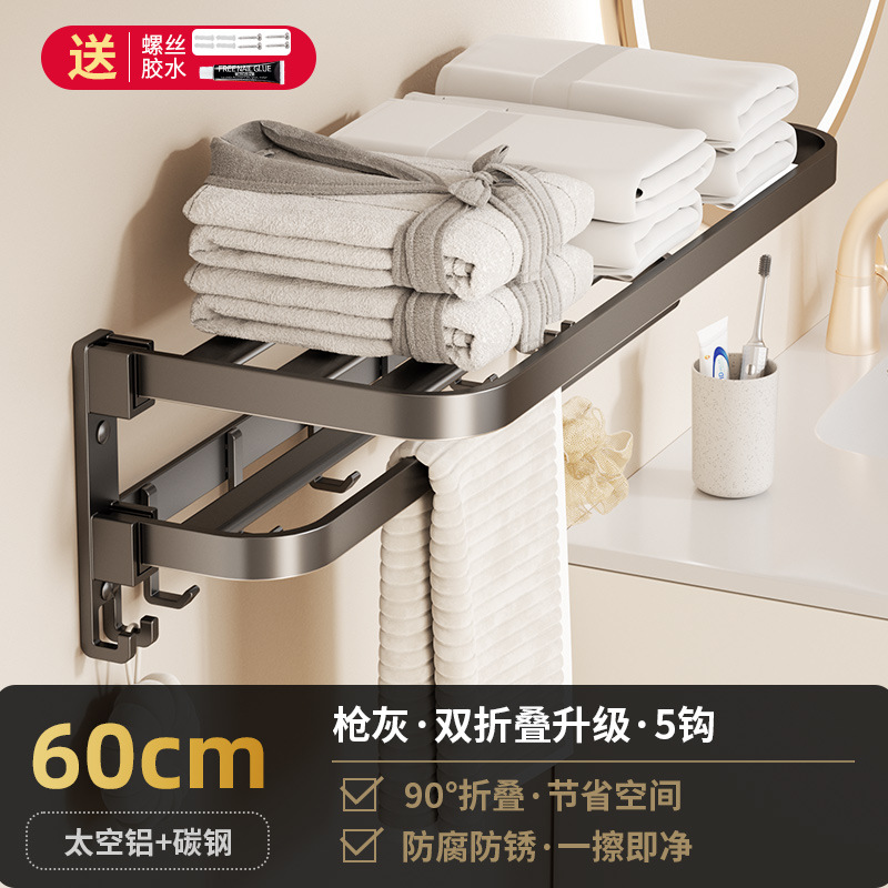 • 60CM 건 그레이 업그레이드 이중 접이식 목욕 수건 걸이
