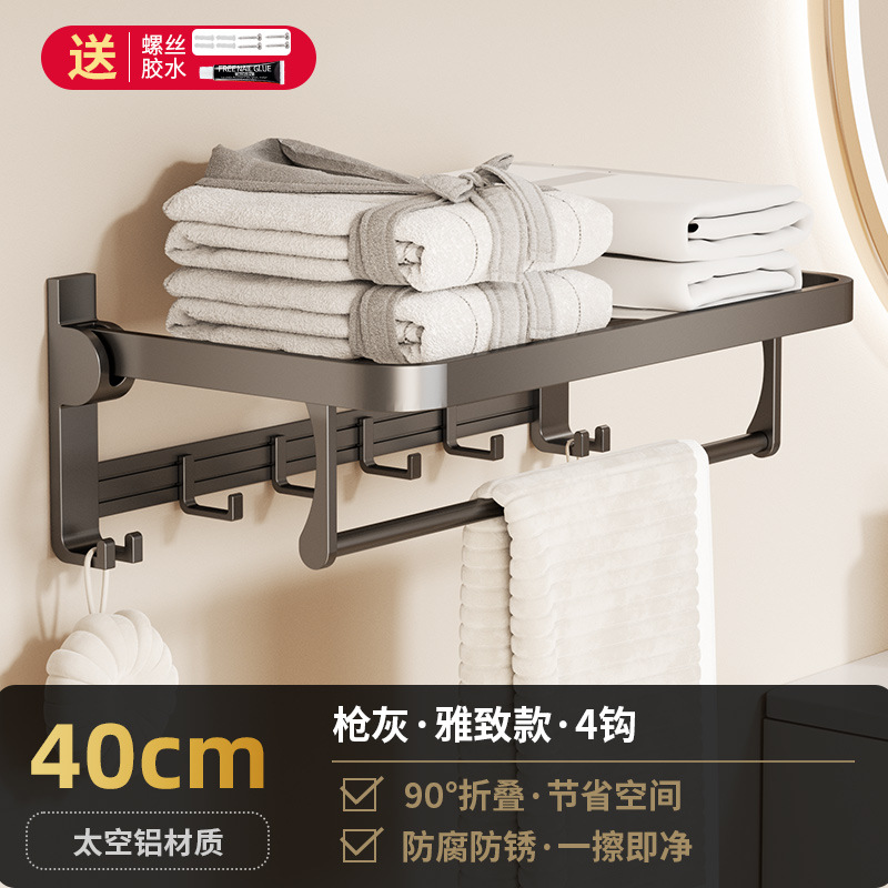 • 40CM 건 그레이 업그레이드 이중 접이식 목욕 수건 걸이