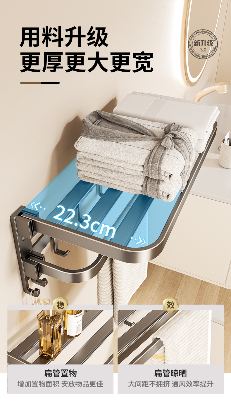 • 60CM 건 그레이 스페이스 알루미늄 플랫 폴 메쉬 바구니 목욕 수건 걸이