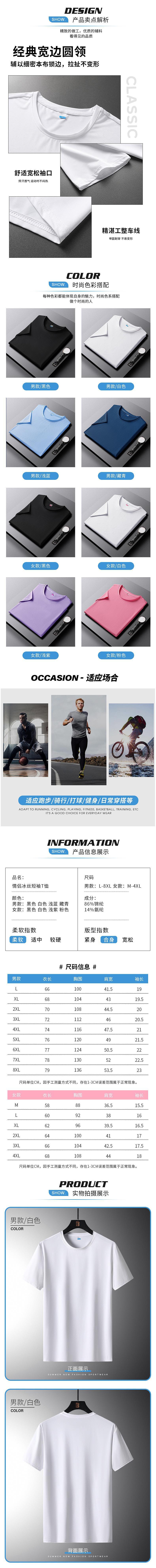 2024 여름 새로운 야외 스포츠 레저 짧은 소매 아이스 실크 티셔츠 플러스 사이즈 남성 커플 빠른 건조 옷 여성 로고스토어 가기