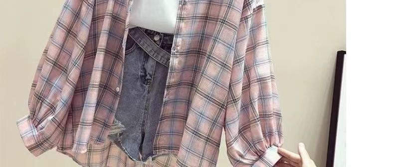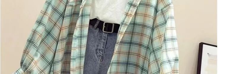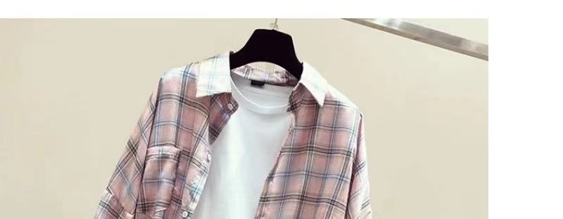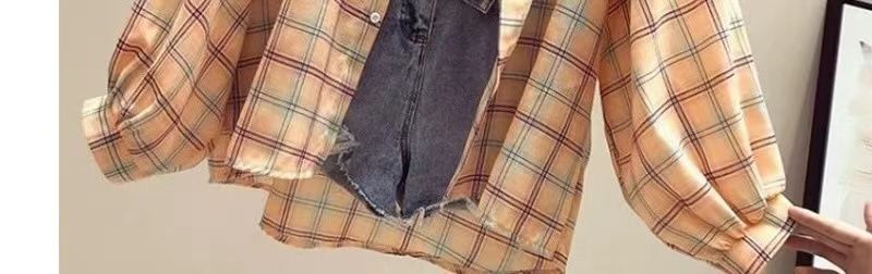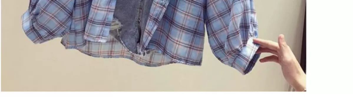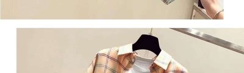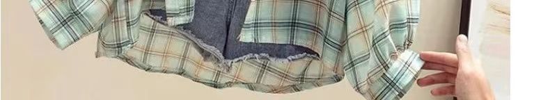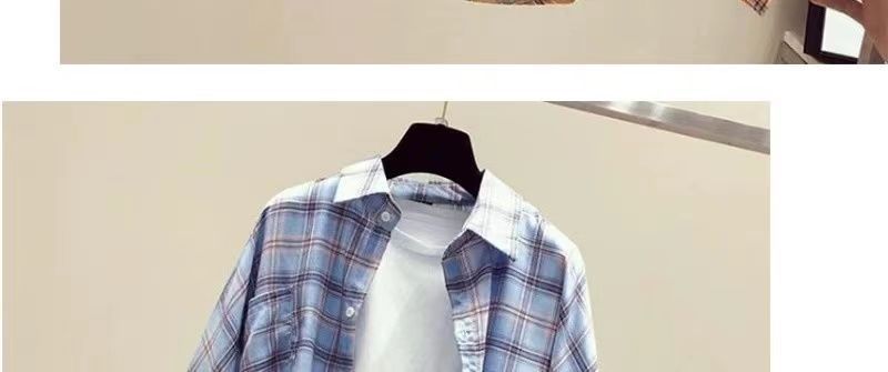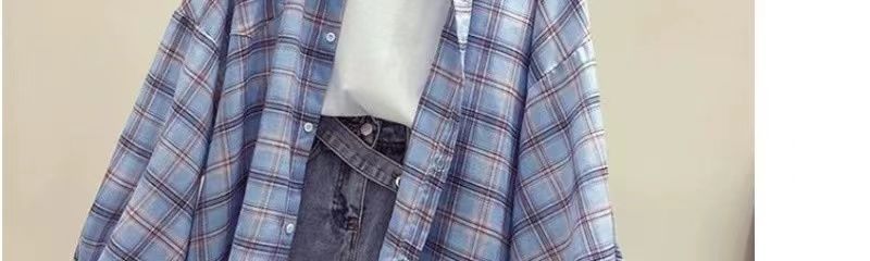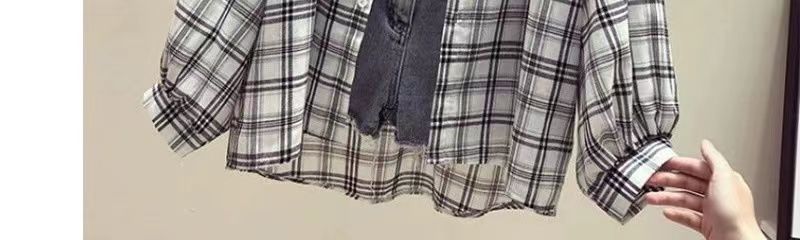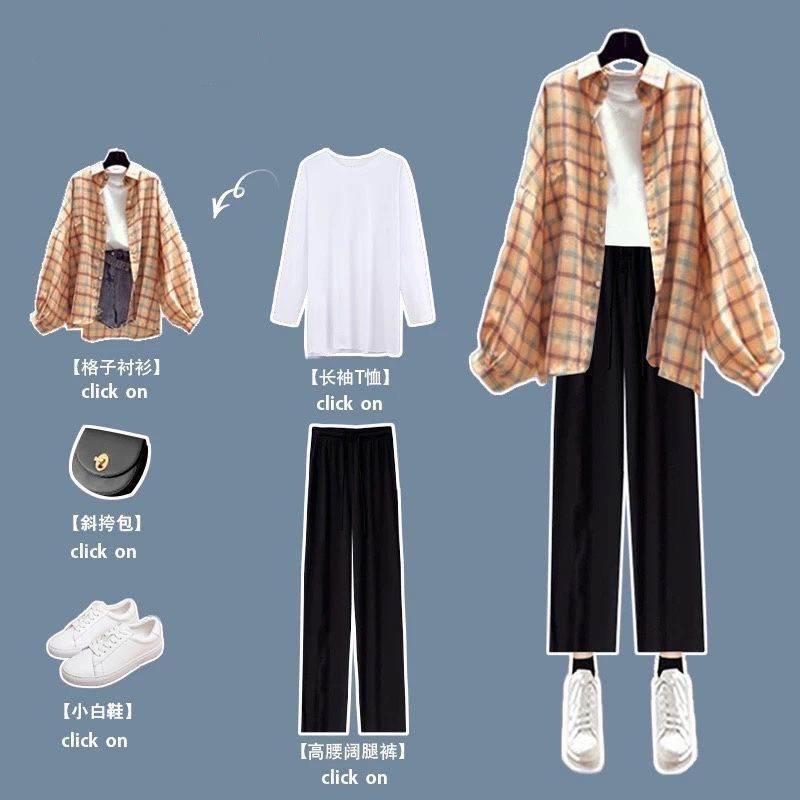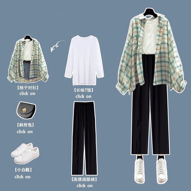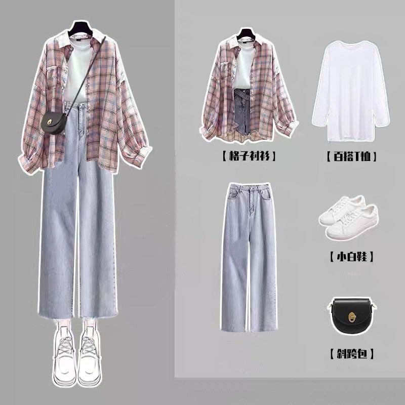 2021 봄 패션 세트 여학생 한국 느슨한 격자 무늬 셔츠 재킷 티셔츠 청바지 산핑 달리기스토어 가기