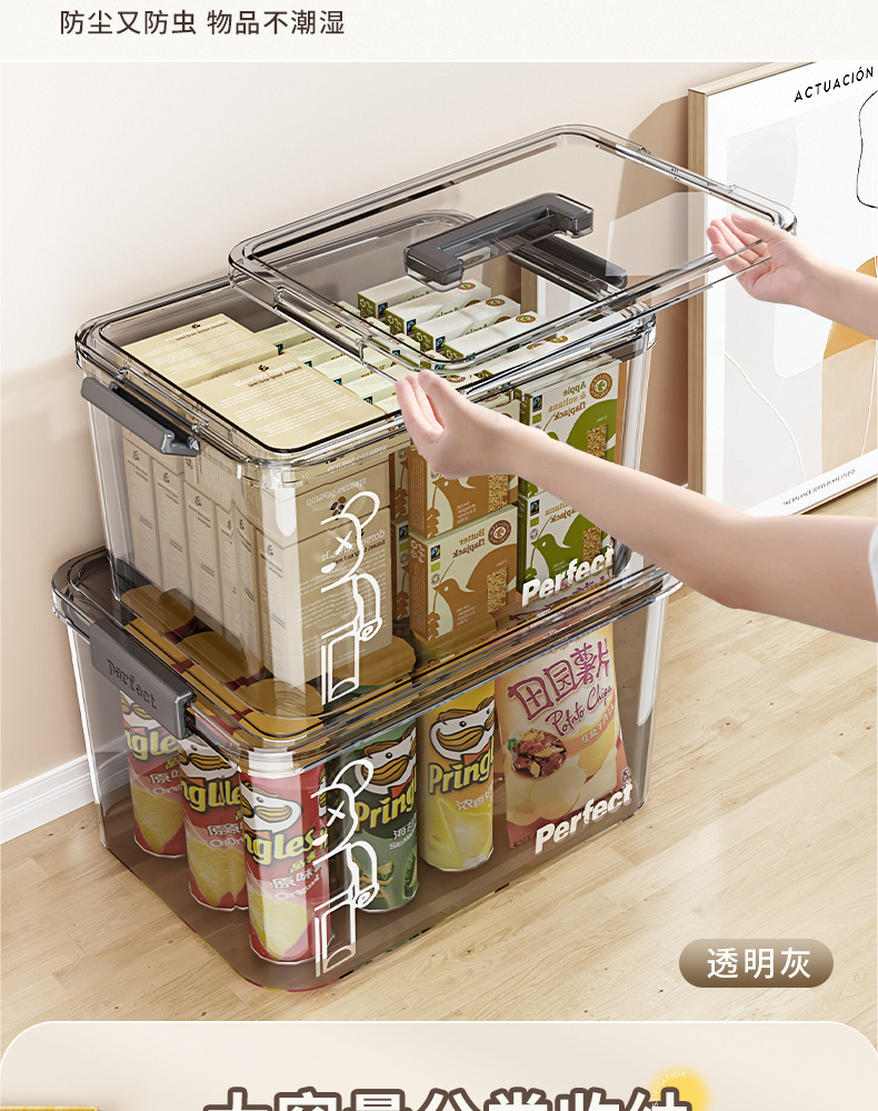 휴대용 투명 저장 상자 가정용 두꺼운 옷 장난감 간식 책 대용량 적합 상자 플라스틱 보관 Huageng