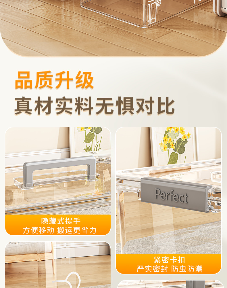 휴대용 투명 저장 상자 가정용 두꺼운 옷 장난감 간식 책 대용량 적합 상자 플라스틱 보관 Huageng스토어 가기