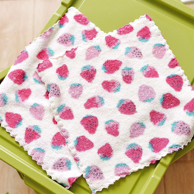 귀여운 만화 딸기 식기 세척 천 가정용 산호 양털 두꺼운 흡수성 섬유 기름없는 와이프 흡수성 작은 Huageng