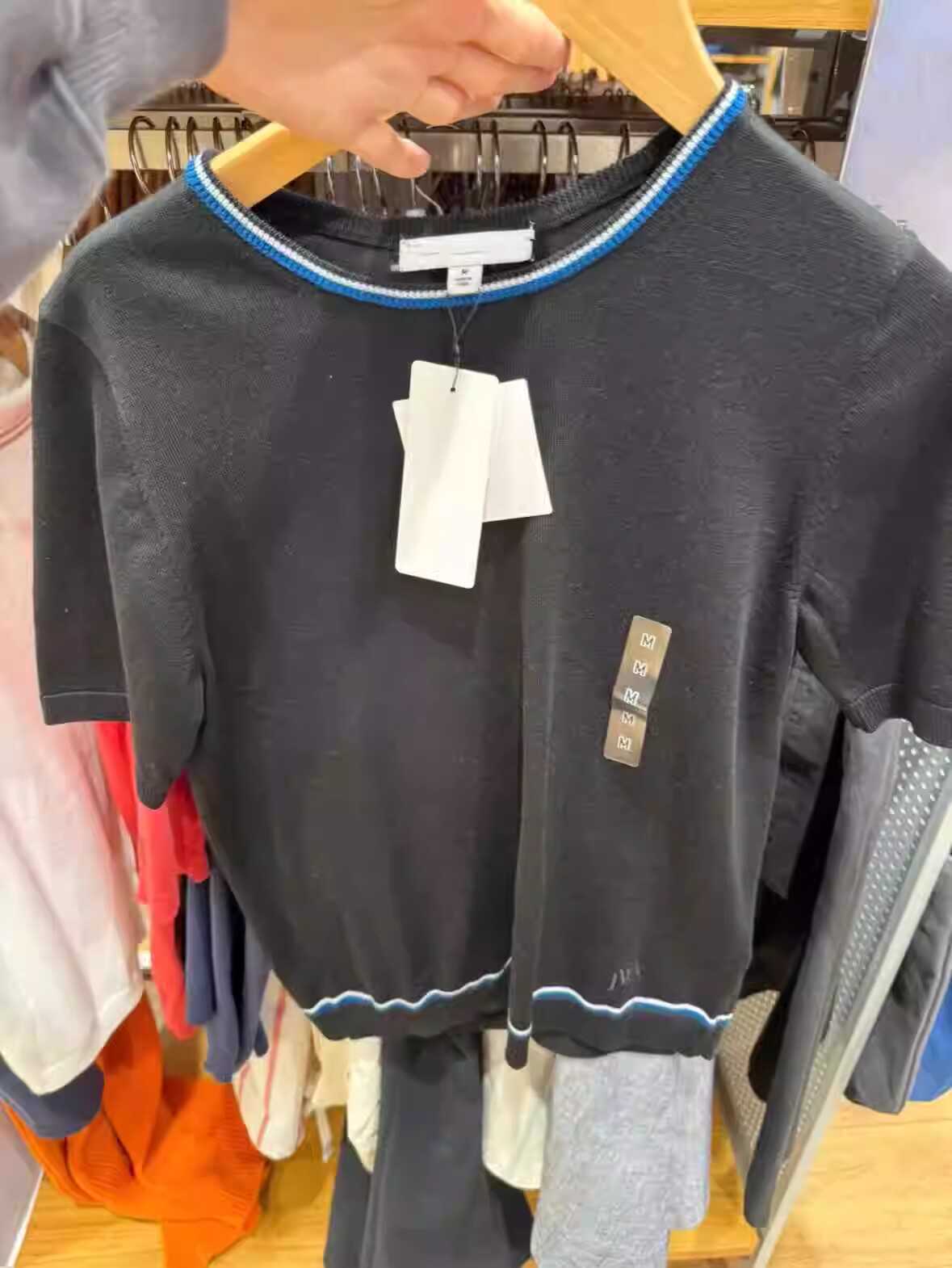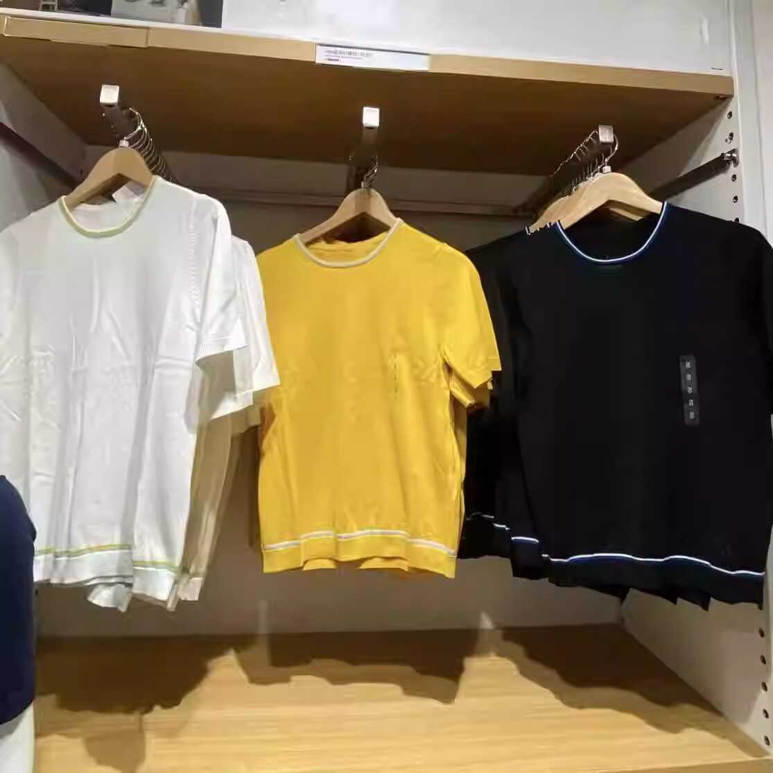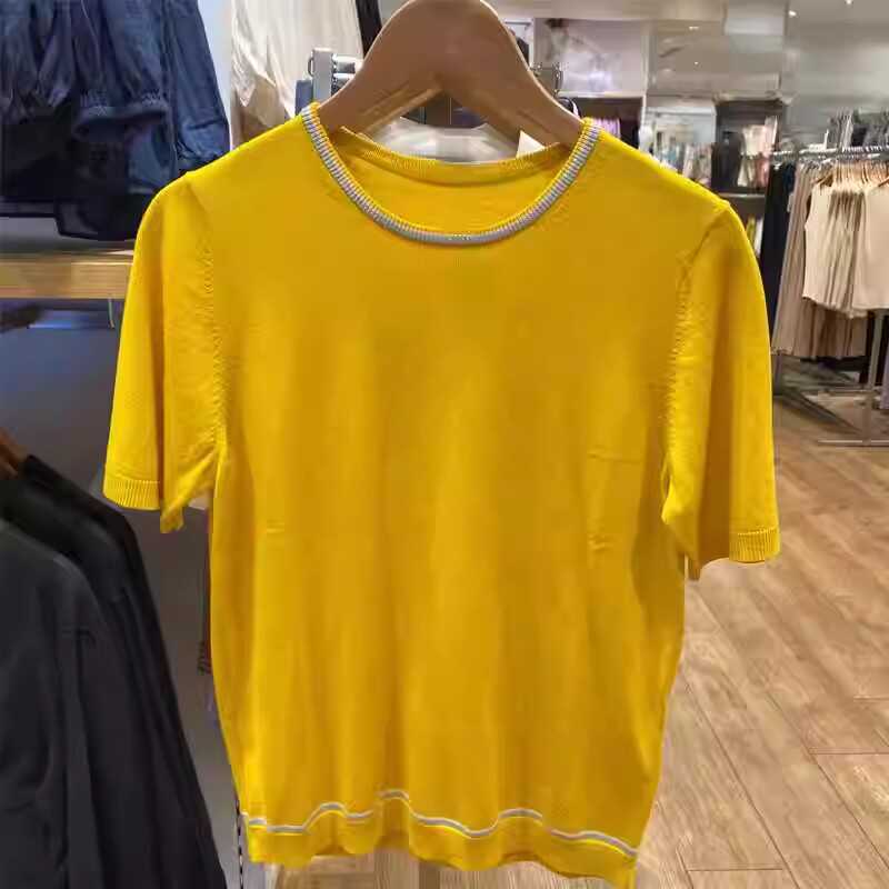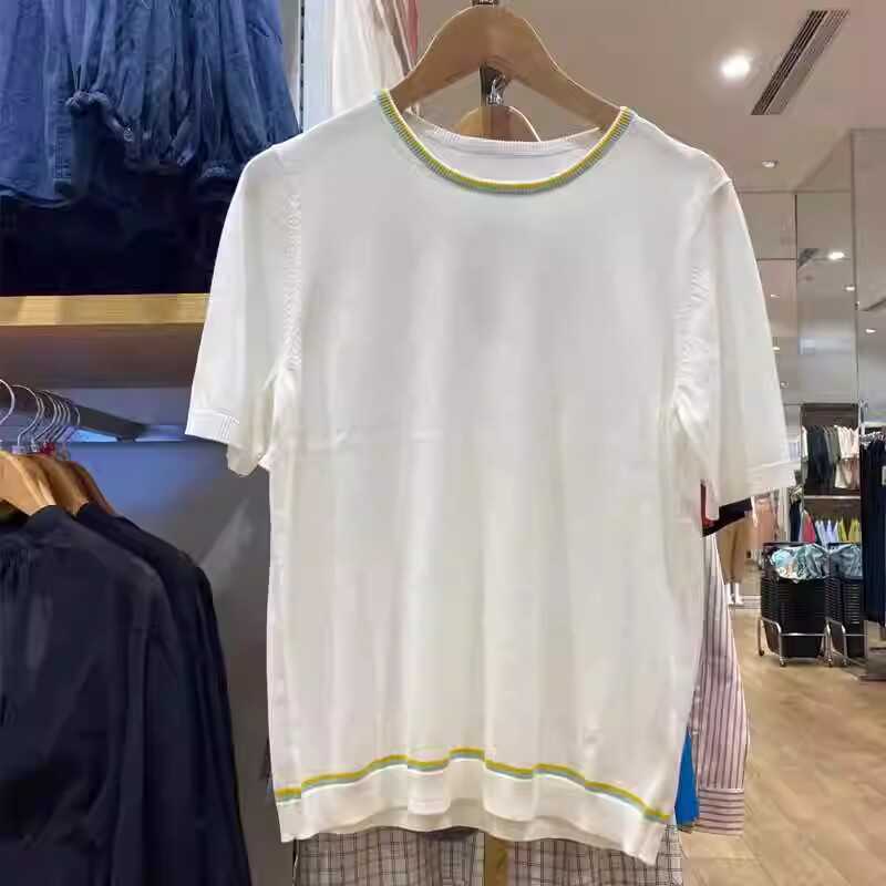 일본 싱글 여름 여자 크루 넥 풀오버 스웨터 컬러 대조 올 매치 쇼트 슬리브 캐주얼 탑 심플 466969