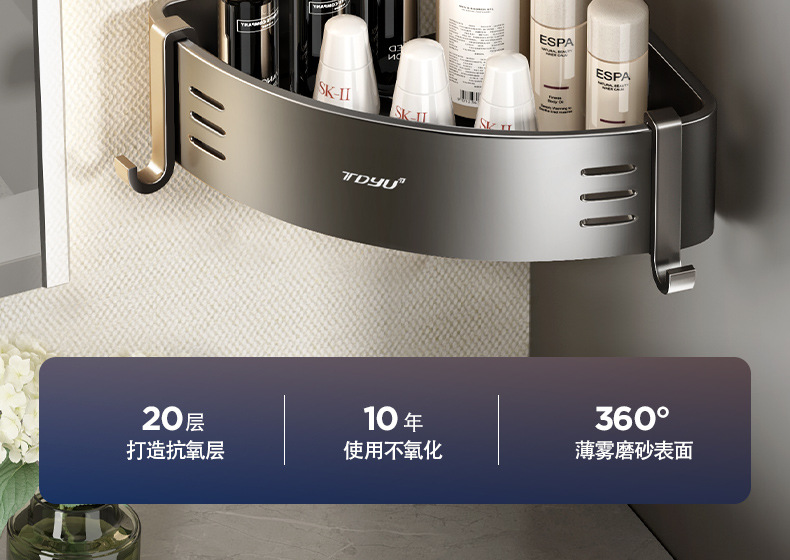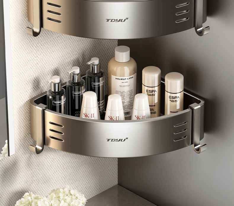 욕실 보관 랙 욕실 삼각형 펀치없는 욕실 워시 테이블 코너 벽 교수형 보관 선반 Hua Geng