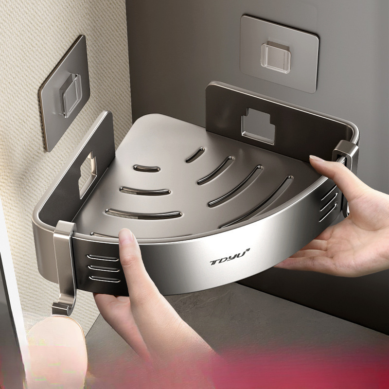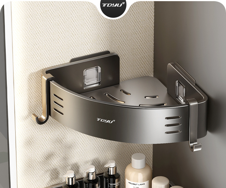 욕실 보관 랙 욕실 삼각형 펀치없는 욕실 워시 테이블 코너 벽 교수형 보관 선반 Hua Geng스토어 가기