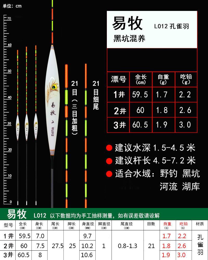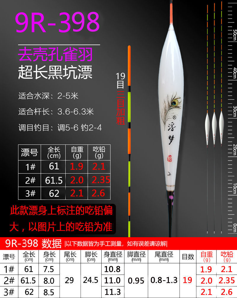 슈퍼 긴 물고기 플로트 60-80cm 리드 불량 플로트 연장 공작 깃털 고감도 붕어 라이트 입 핑 런스토어 가기