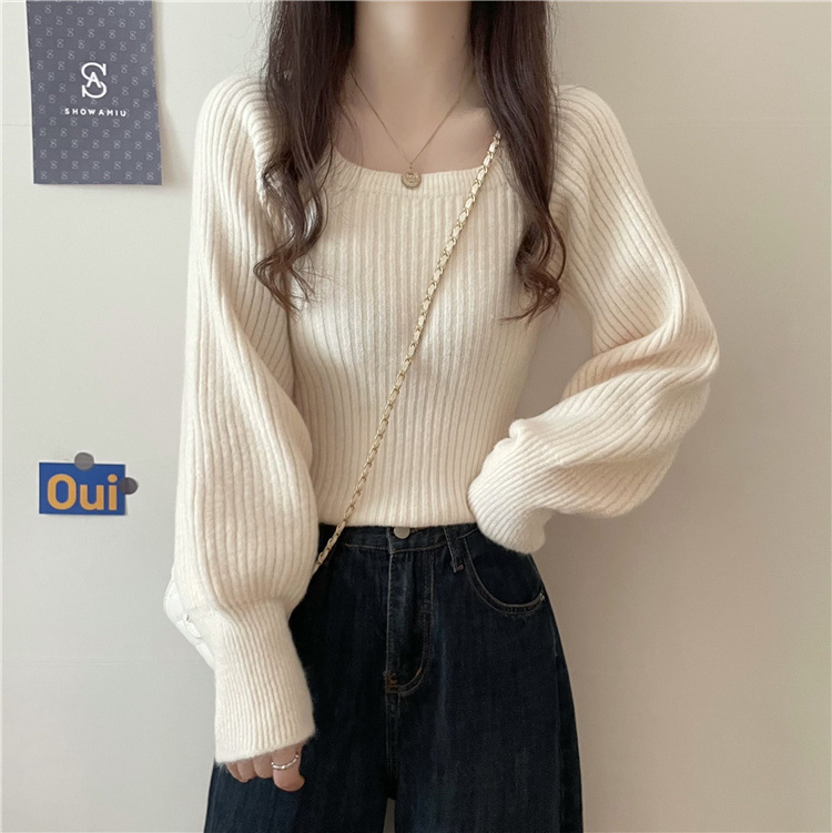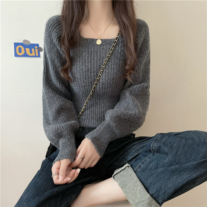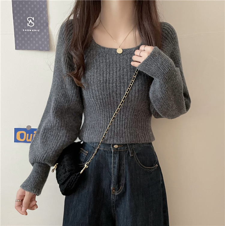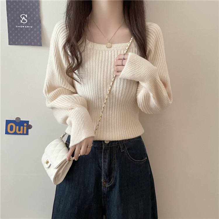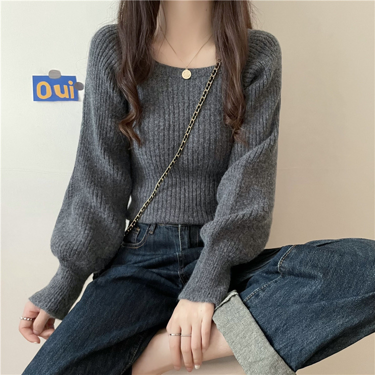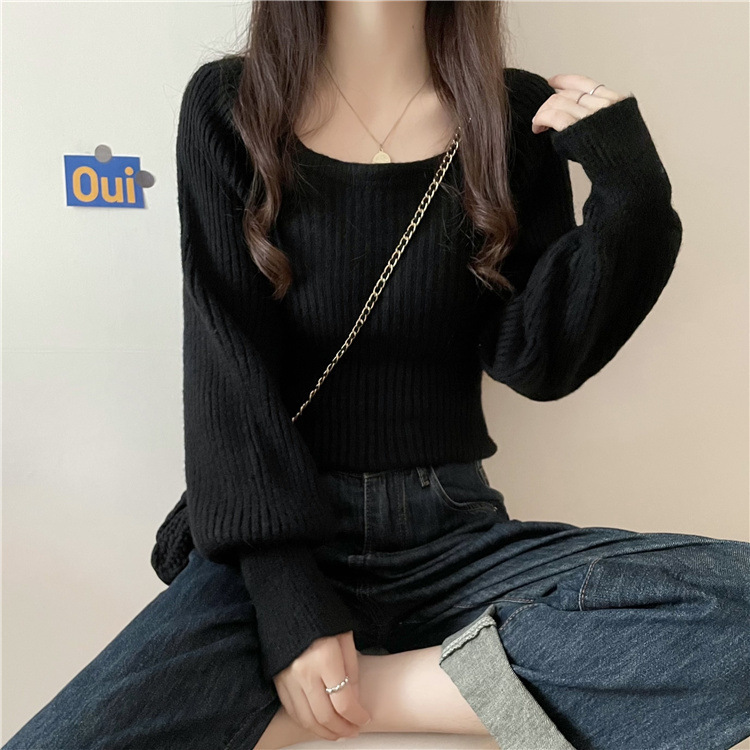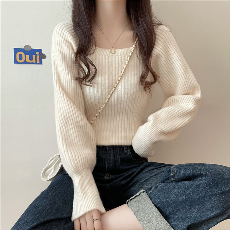 니트 베이스 셔츠 여성용 가을 겨울 2025년 신상품, 스타일리시한 로우넥 긴팔 탑, 슬림핏 풀오버 스웨터 겨울용스토어 가기