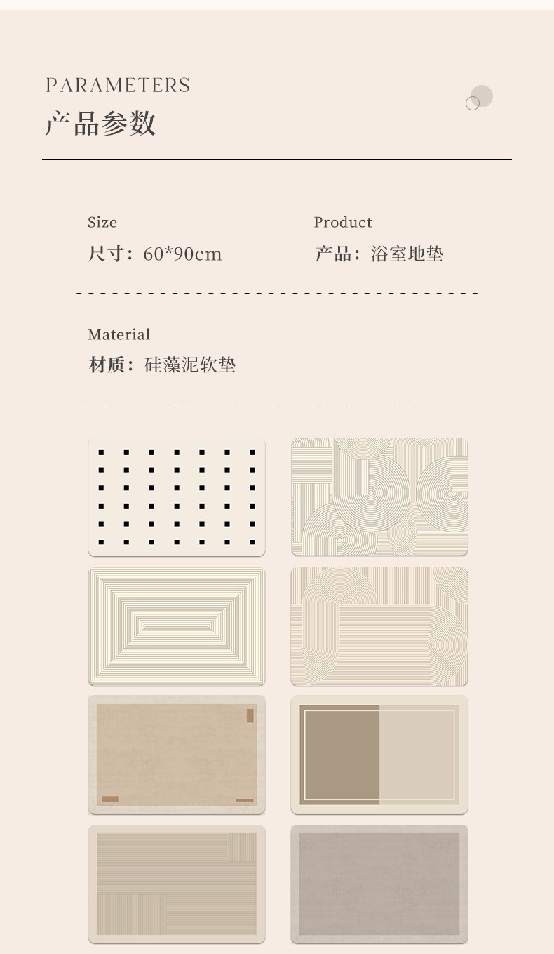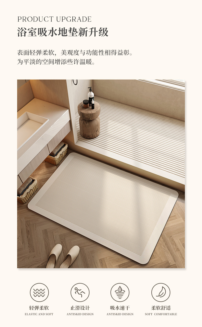 크림 바람 욕실 Diatom Mud Mat 화장실 흡수성 빠른 건조 매트 화장실 미끄럼 방지 도어 매트 절단 가능한 발 매트
