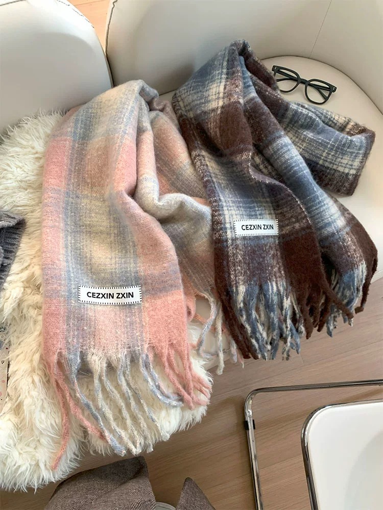 공장 분위기 격자 무늬 스카프 여성의 가을과 겨울 두꺼운 마하이 모방 캐시미어 학생 따뜻한 커플 스카프 남성 국경 스카프스토어 가기