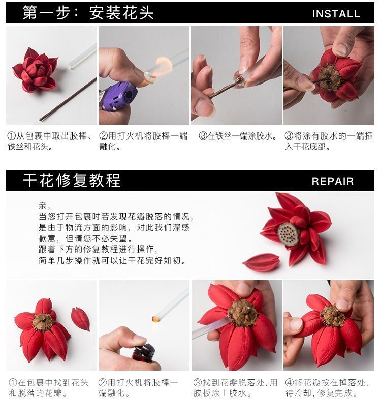 진짜 꽃의 말린 꽃 꽃다발 공기 건조 연꽃 뿌리 자연 장식 연꽃 캐노피 꽃꽂이 거실 가구 buddhism zen 의미 pingyun스토어 가기