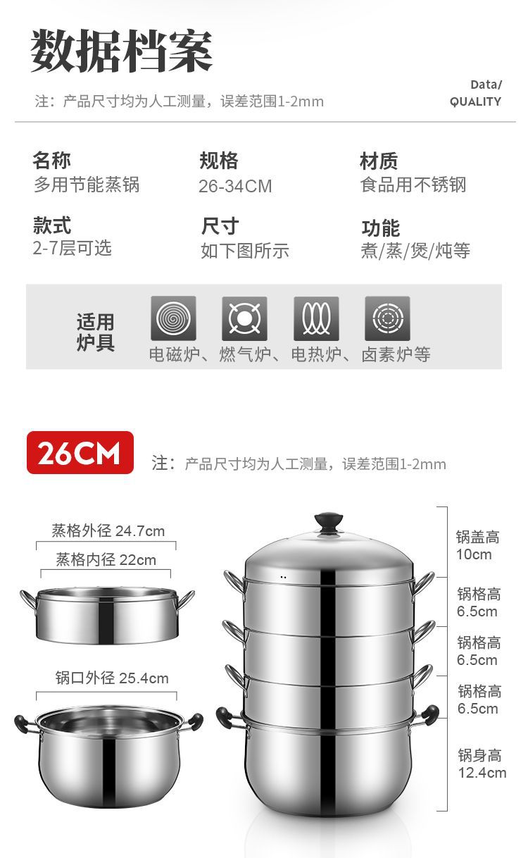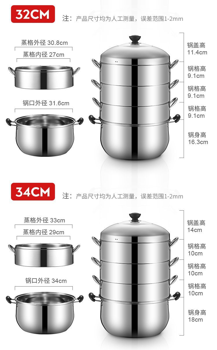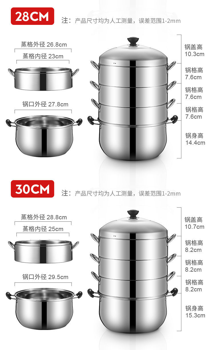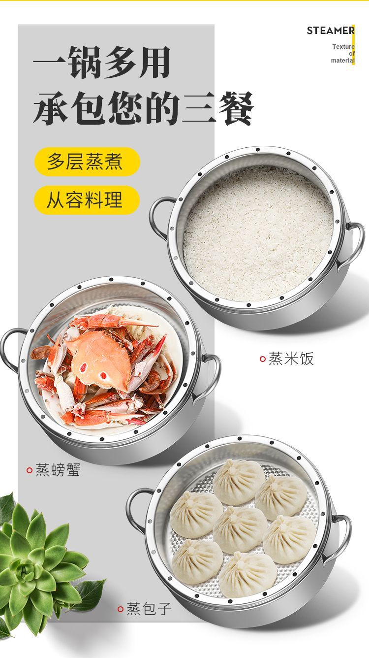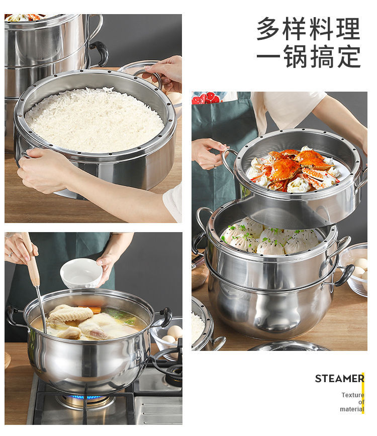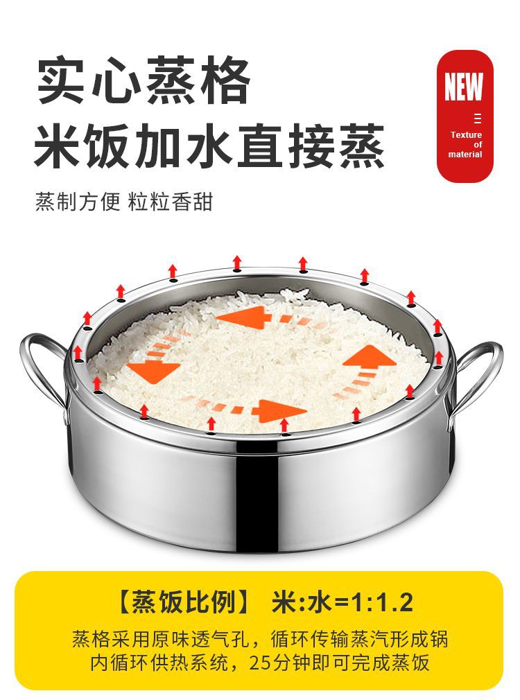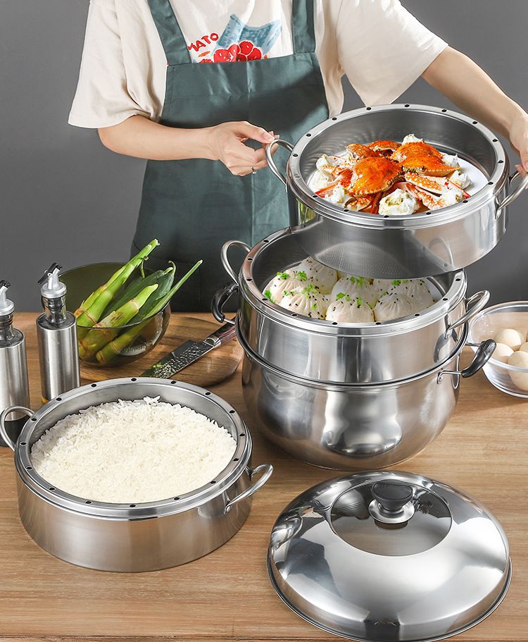 두꺼운 솔리드 오리지널 기선 가정용 비 다공성 라이스 기선 스테인레스 스틸 2-3-4 층 기선 비 스트링 풍미 핑 런