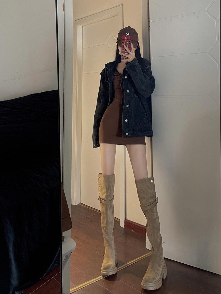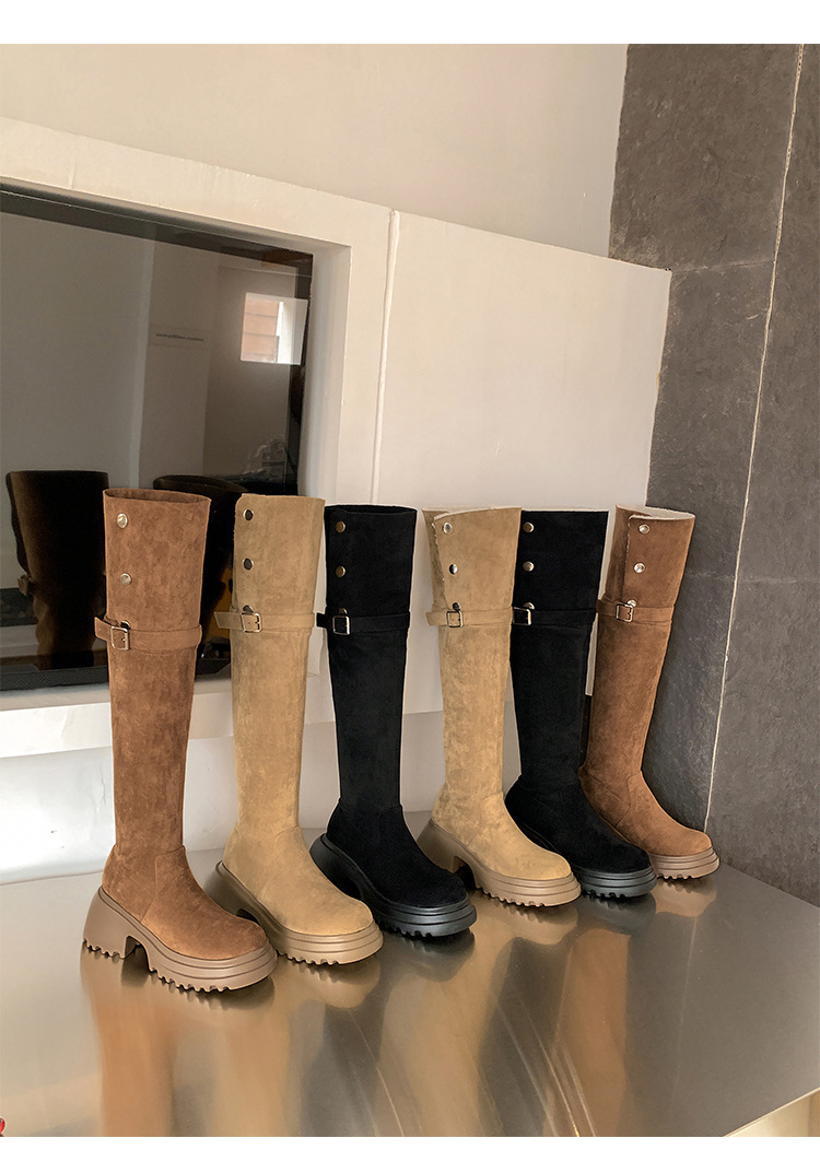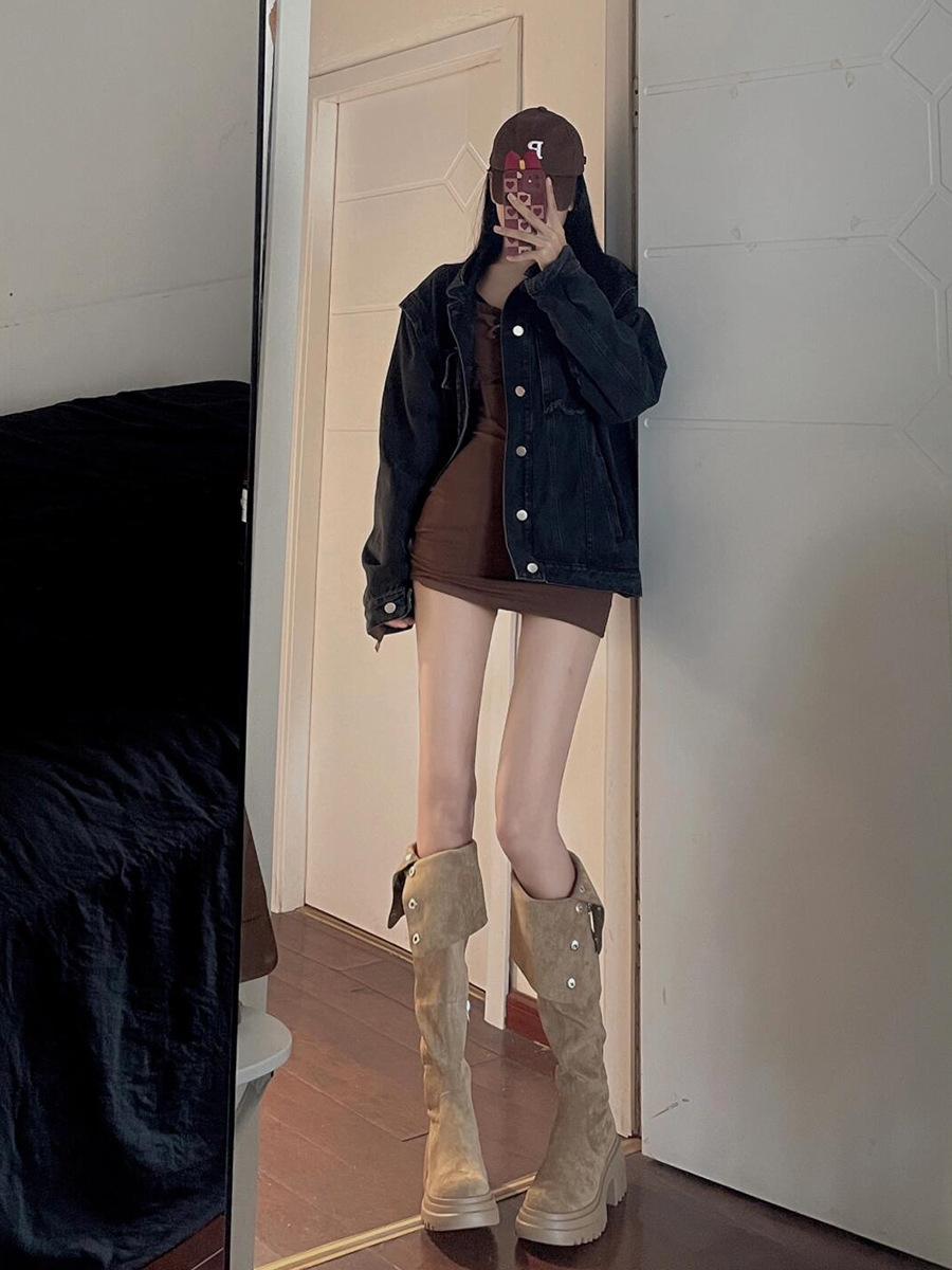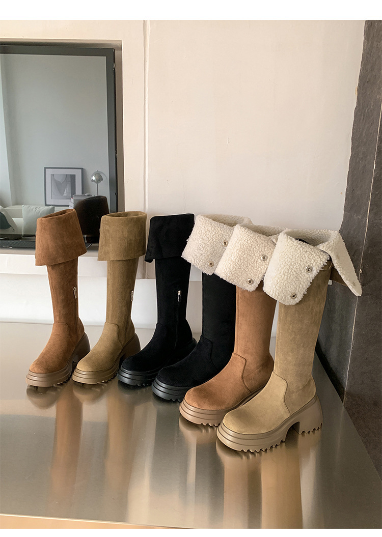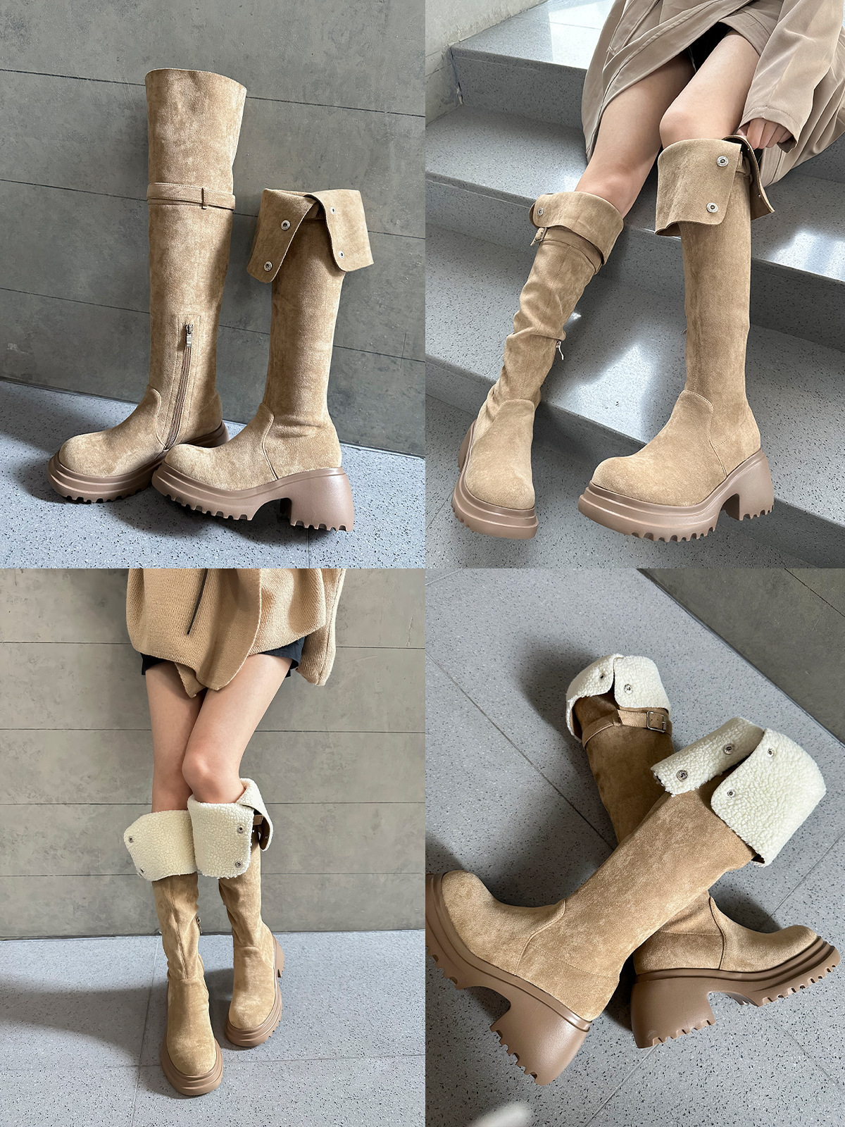 작은 내부 높이 오버 더 무릎 부츠 여성용 메일러드 가을 및 겨울 새로운 두꺼운 바닥 투웨어 접이식 부츠