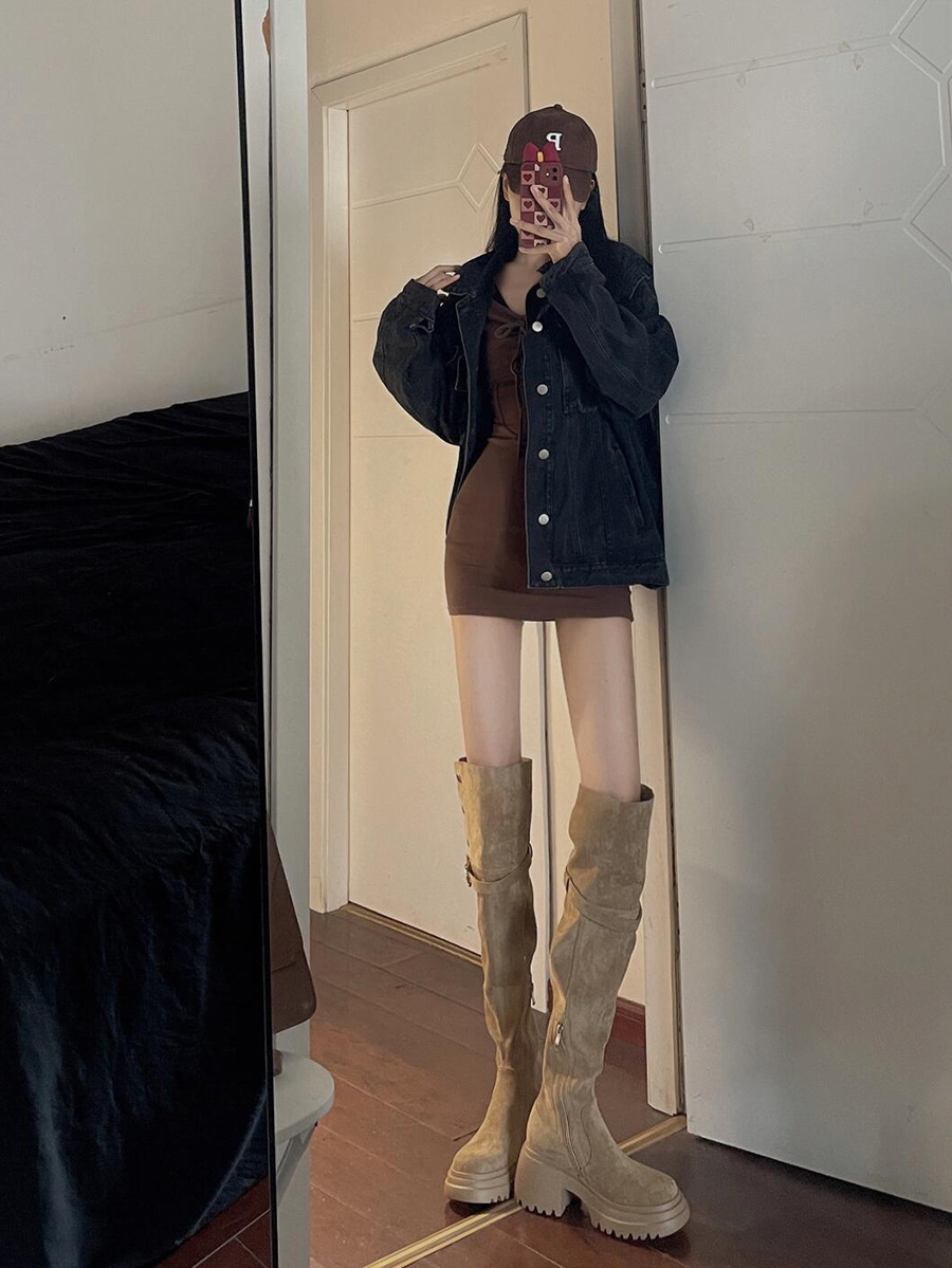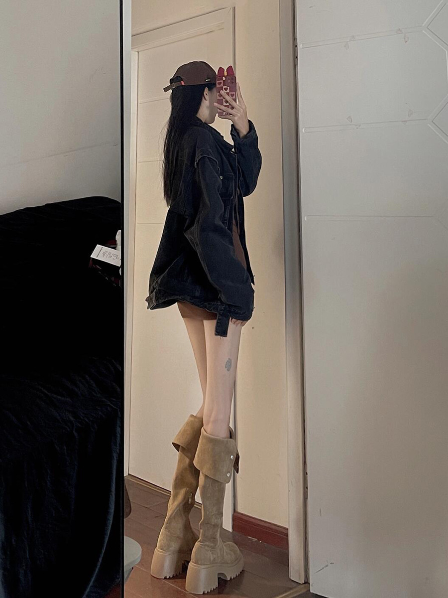 작은 내부 높이 오버 더 무릎 부츠 여성용 메일러드 가을 및 겨울 새로운 두꺼운 바닥 투웨어 접이식 부츠스토어 가기