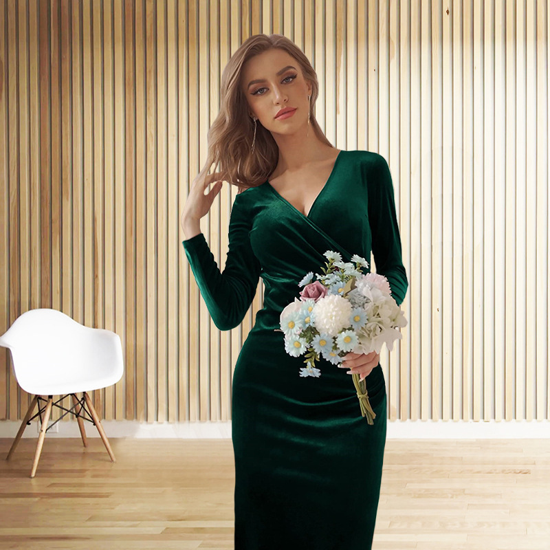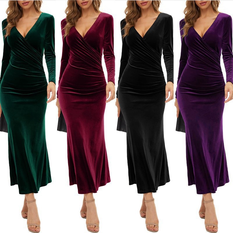 아마존 대외 무역 유럽과 미국 2023 새로운 V 넥 백 엉덩이 스커트 슬림 우아한 기질 피쉬 테일 원피스 저녁 원피스