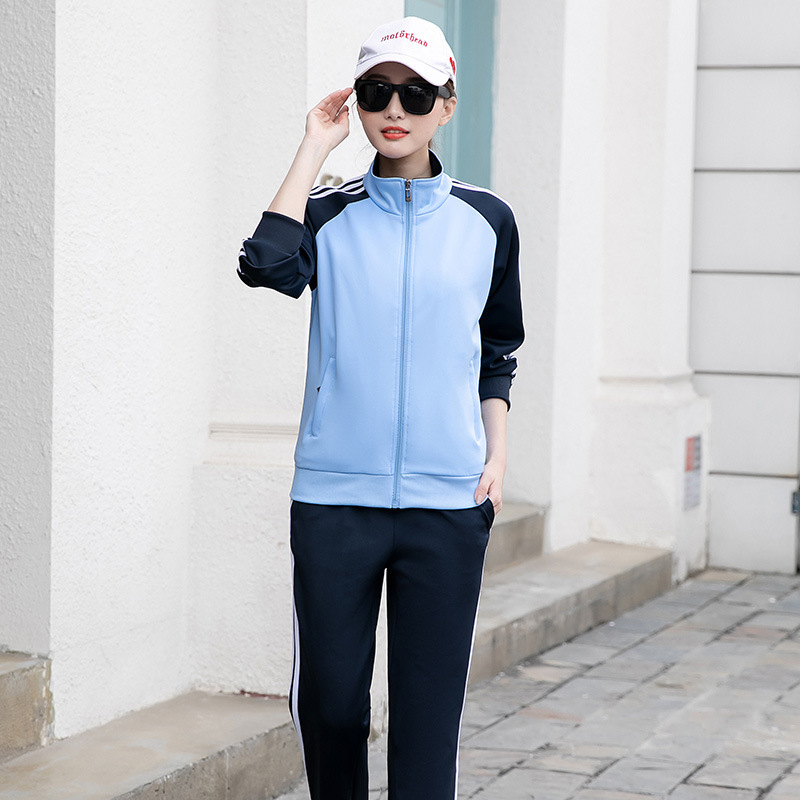 새로운 봄과 가을 칼라 바지 2 종 학생 학교 유니폼 세트 컬러 매칭 팀 유니폼 커플 옷 작업복스토어 가기